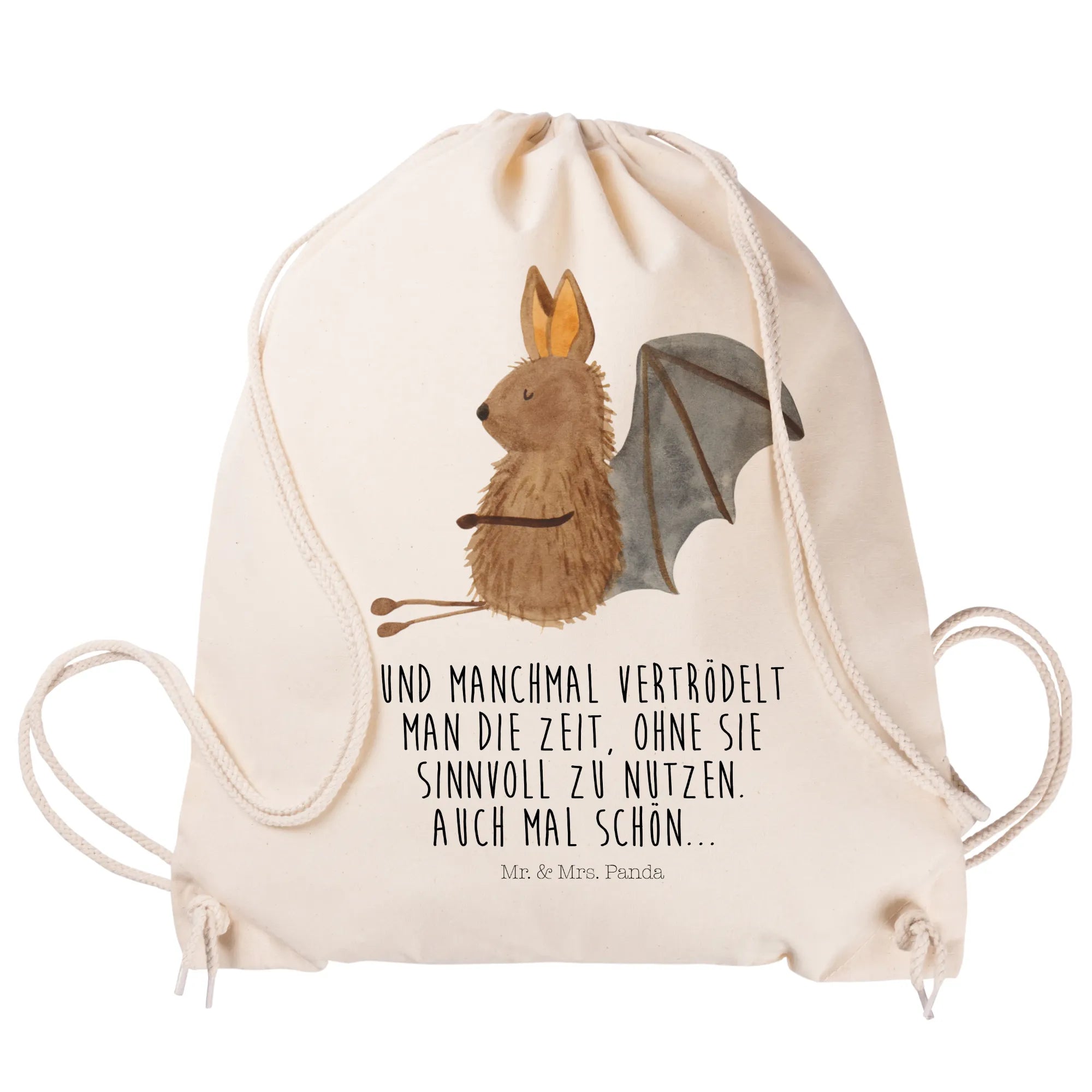 Celebrate birthdays, holidays, or simply brighten someone's day with this unique drawstring bag. So, whether you’re looking for a gym bag, a carrier bag, or even a cute jute bag, the Mr. & Mrs. Panda Sitting Bat Drawstring Bag proves to be a versatile companion.