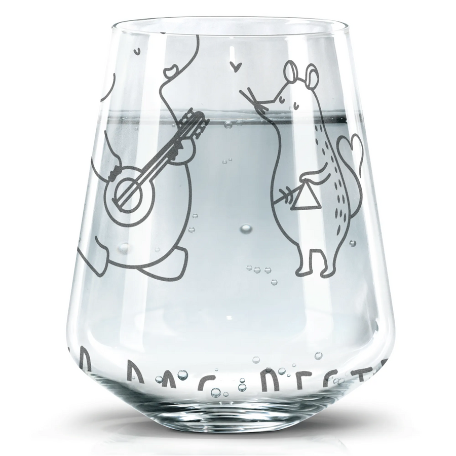 Say hello to the charming Trinkglas from Mr. & Mrs. Panda! It measures 103 mm (4 inches) in height and has a diameter of 88 mm (3 inches), perfect for holding 400 ml (14 oz) of your preferred beverage. With beautiful engravings that showcase heartfelt quotes and designs, this glass is not just functional but also a stylish accessory for any table setting. Manufactured from robust glass and featuring a unique matte effect due to high-quality laser engraving, it's also dishwasher safe for easy cleanup. Whether you're hosting a party or enjoying a quiet night in, this Trinkglas will surely impress your guests and enhance your drinking experience.
