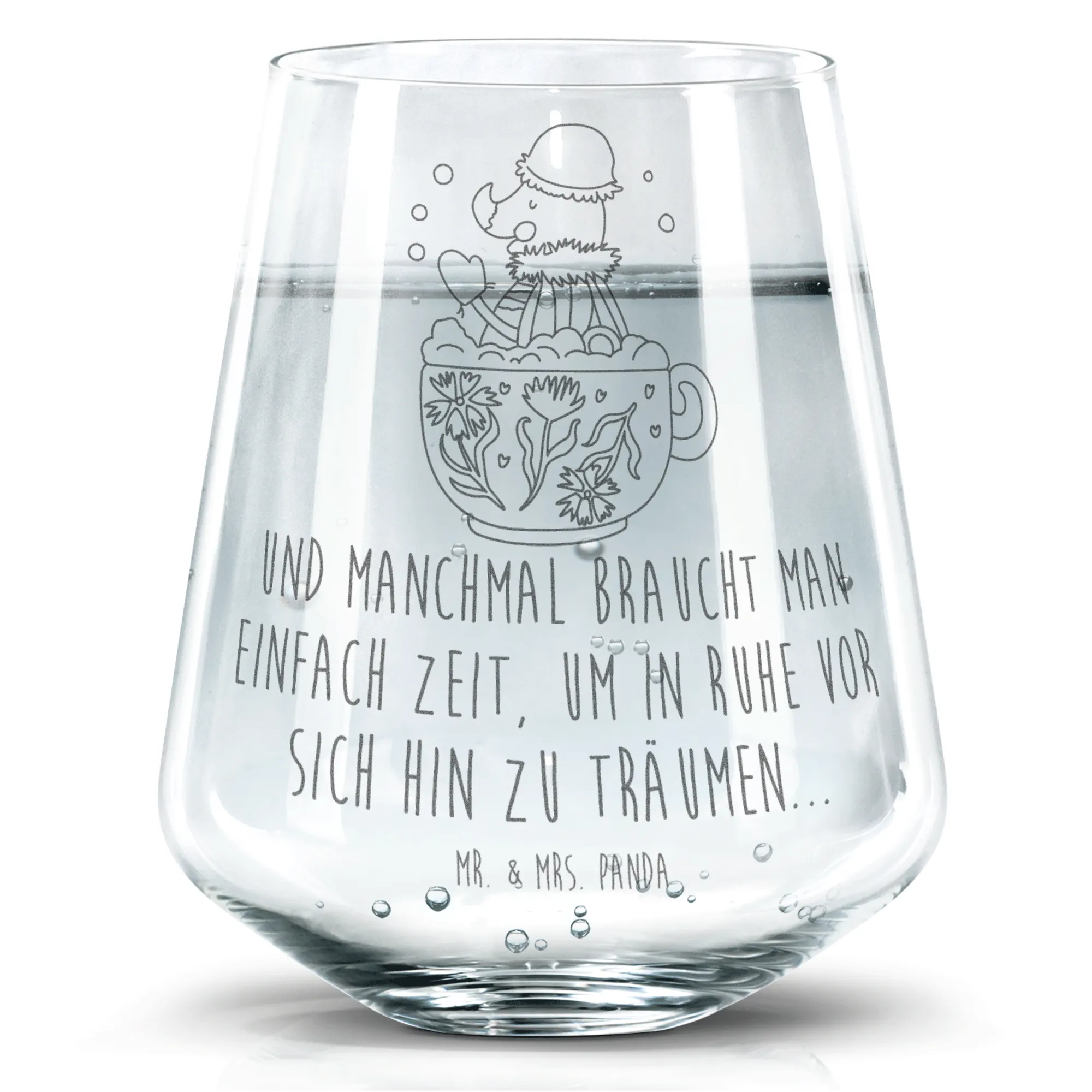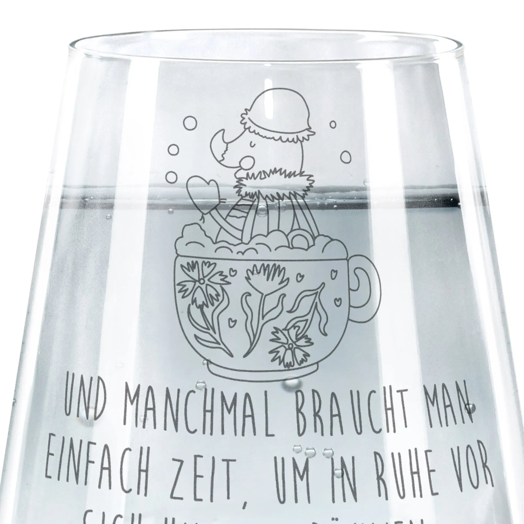 Elevate your beverage experience with the stunning Trinkglas from Mr. & Mrs. Panda. This beautifully designed glass stands at 103 mm (4 inches) tall and has an 88 mm (3 inches) diameter, accommodating up to 400 ml (14 oz) of your drink of choice. Adorned with delightful engravings featuring cherished quotes and images, this glass isn't just practical but also a perfect conversation starter. The premium laser engraving creates a modern matte effect that feels fantastic to the touch. It's made of durable glass and is dishwasher safe for your convenience. Perfect for any occasion, this Trinkglas is sure to make a lovely addition to your collection!