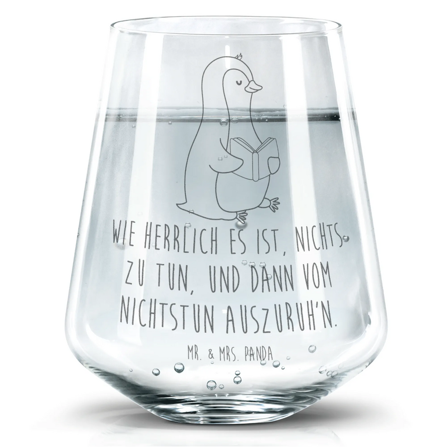Das wunderschöne Trinkglas mit dem süßen Pinguin-Motiv aus der Pinguin-Kollektion von Mr. & Mrs. Panda ist das perfekte Geschenk für alle Bücherliebhaber und Entspannungssuchenden! Mit einem zauberhaften Pinguin, der begeistert ein Buch liest, bringt es die Freude am Lesen direkt in dein Zuhause.