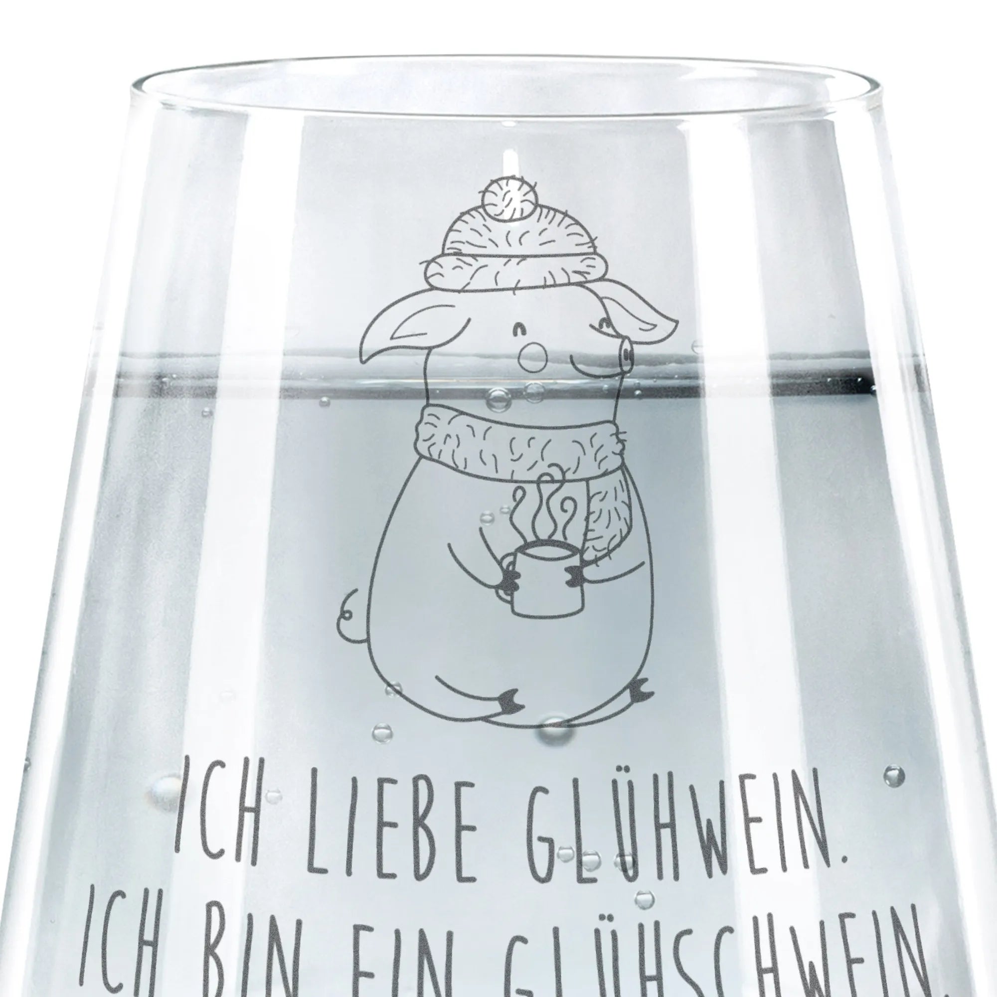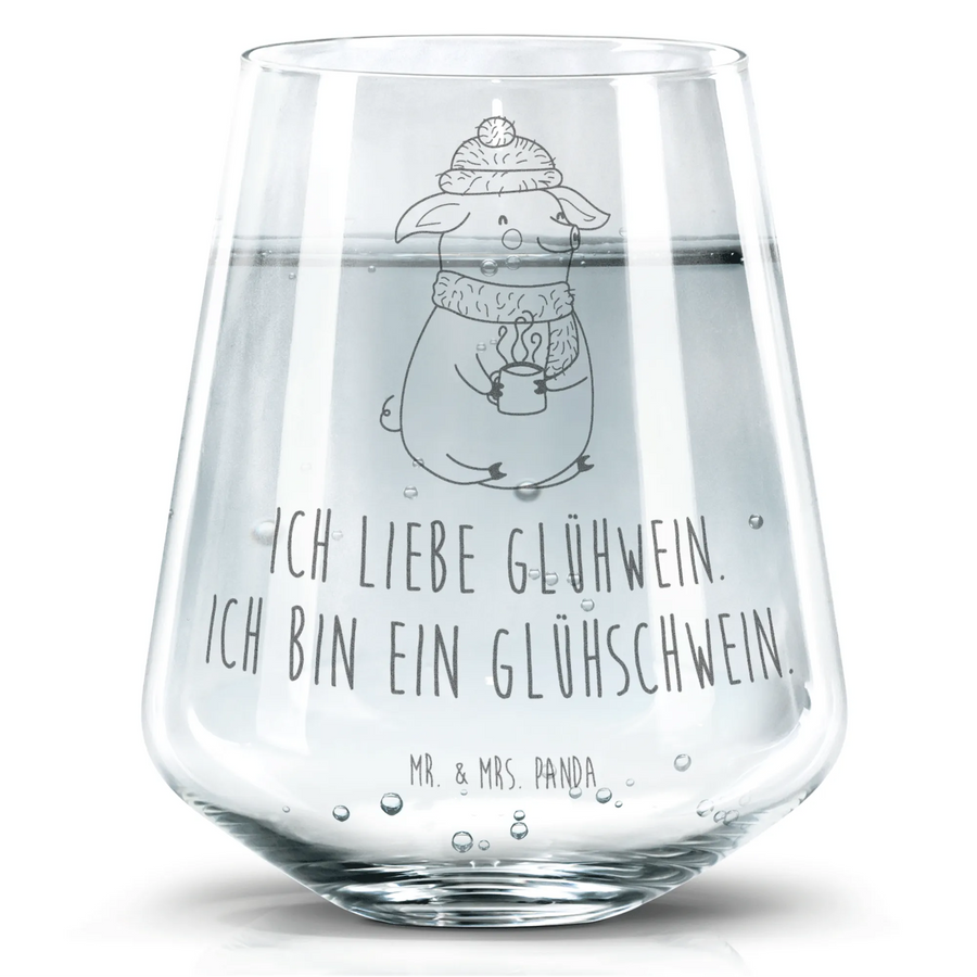 Entdecke das bezaubernde Trinkglas mit dem fröhlichen Motiv "Glühschwein" aus der Winter Kollektion von Mr. & Mrs. Panda! Dieses wunderschöne Trinkglas ist nicht nur ein praktisches Accessoire für deine kalte Jahreszeit, sondern auch ein echter Hingucker auf jedem Tisch.
