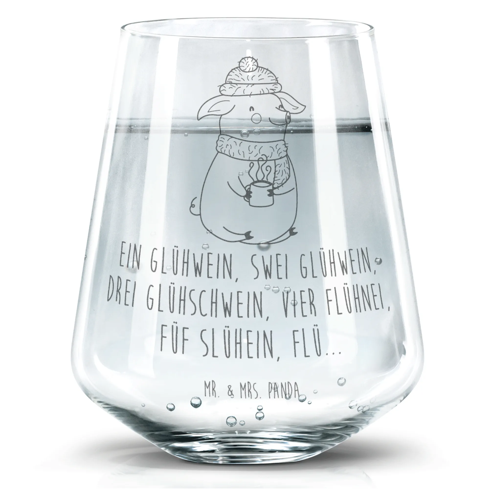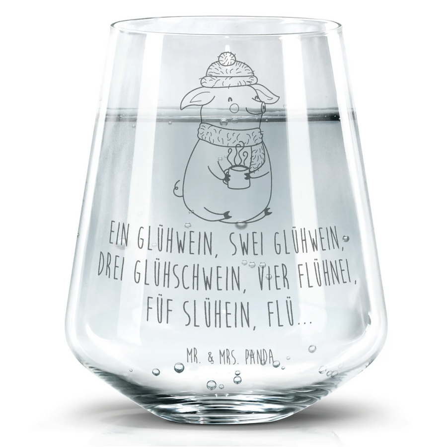 Das Lallelndes Glühschwein Trinkglas von Mr. & Mrs. Panda ist nicht nur ein einfaches Trinkglas, sondern ein liebevolles Geschenk, das Freude in die kalte Winterzeit bringt.