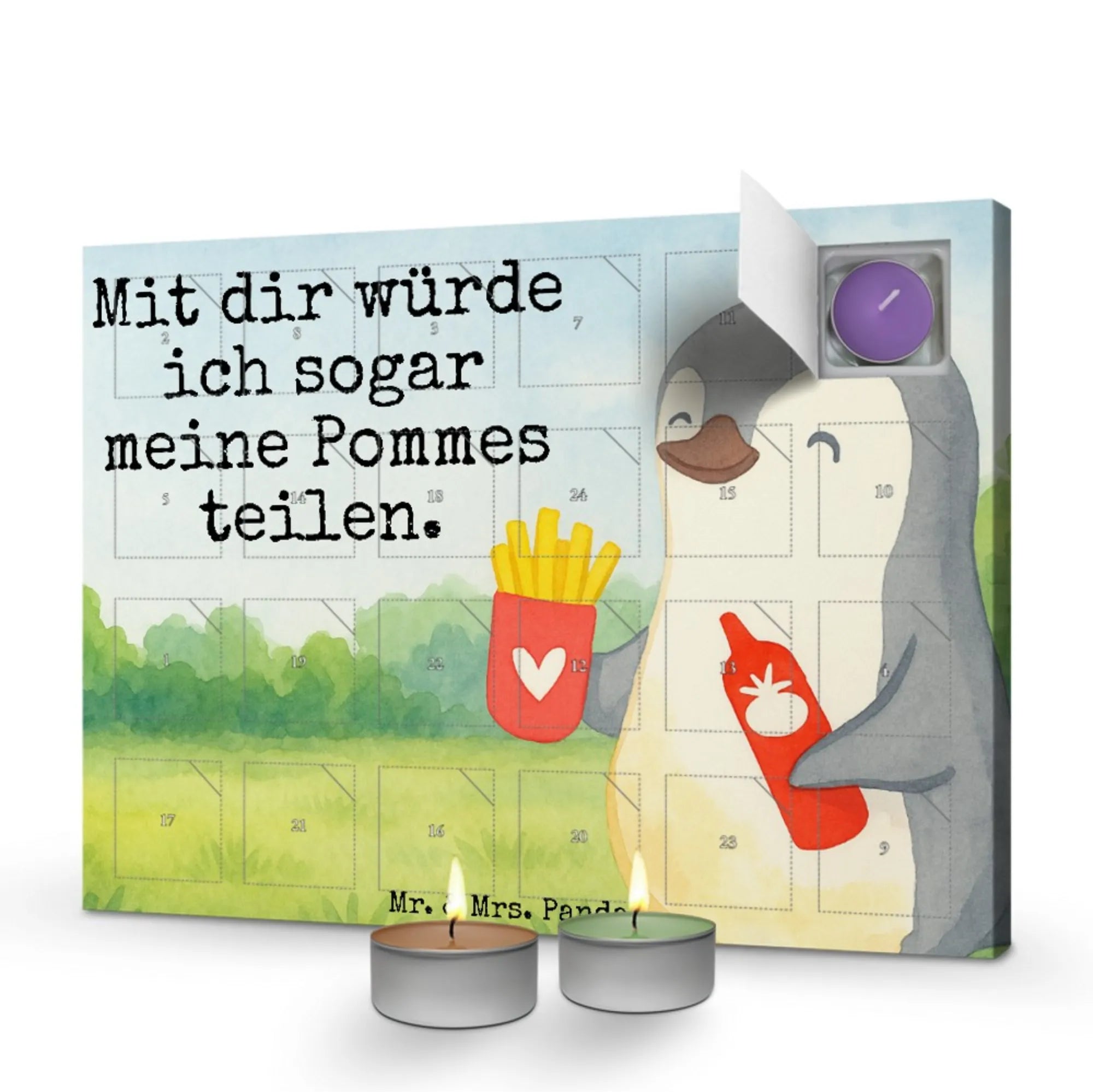 Duftkerzen Adventskalender Pinguin Pommes Design - mit Spruch