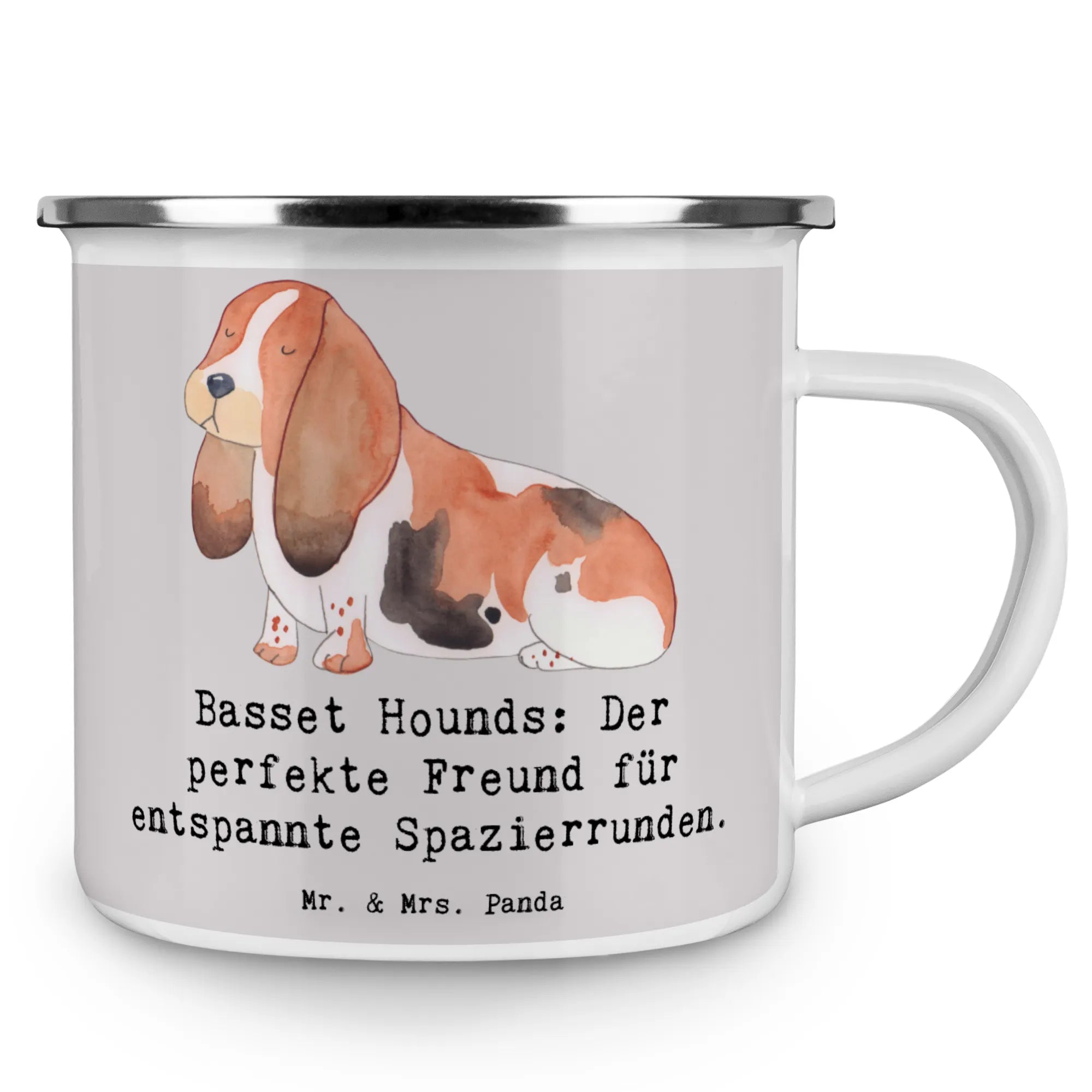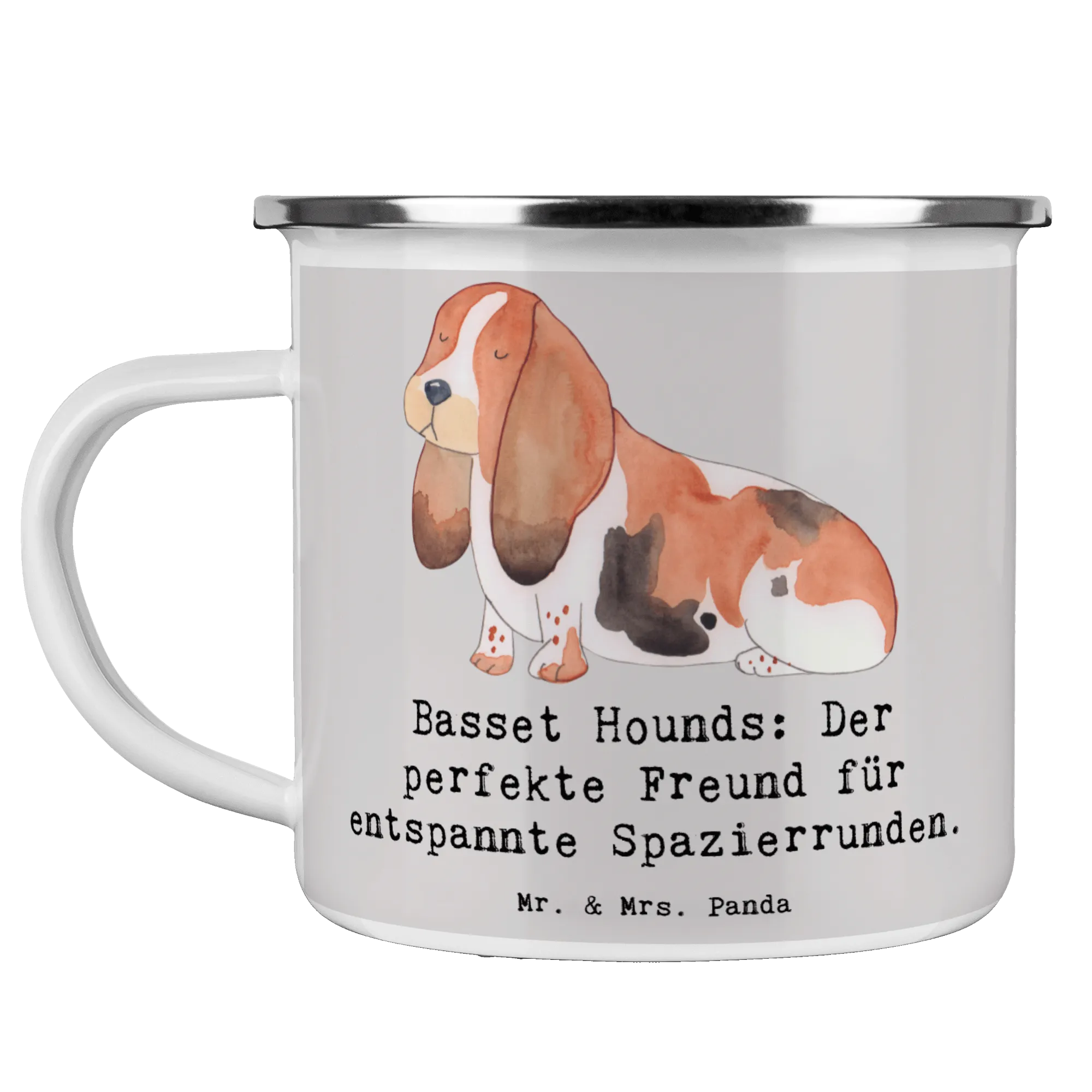 Enamel camping mug Basset Hounds: Der perfekte Freund für entspannte Spazierrunden. - Grey Pastel