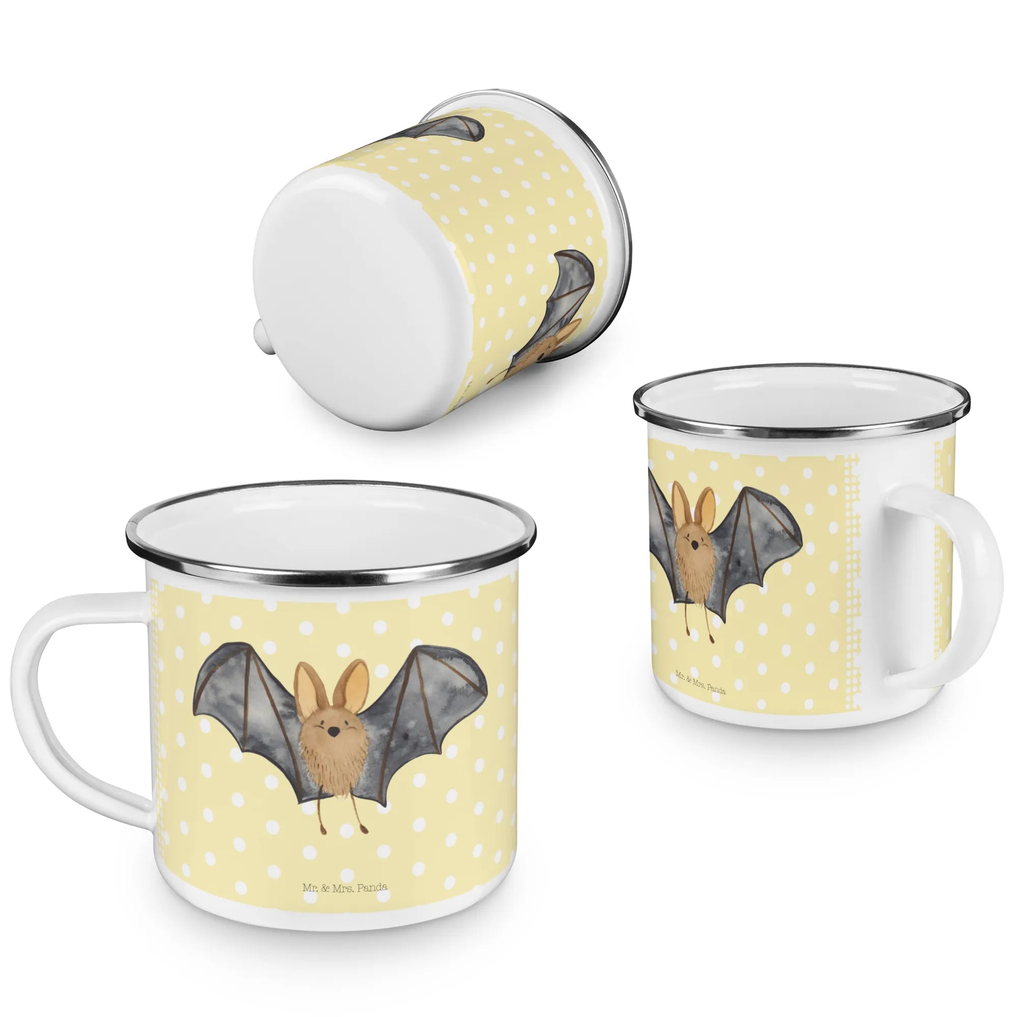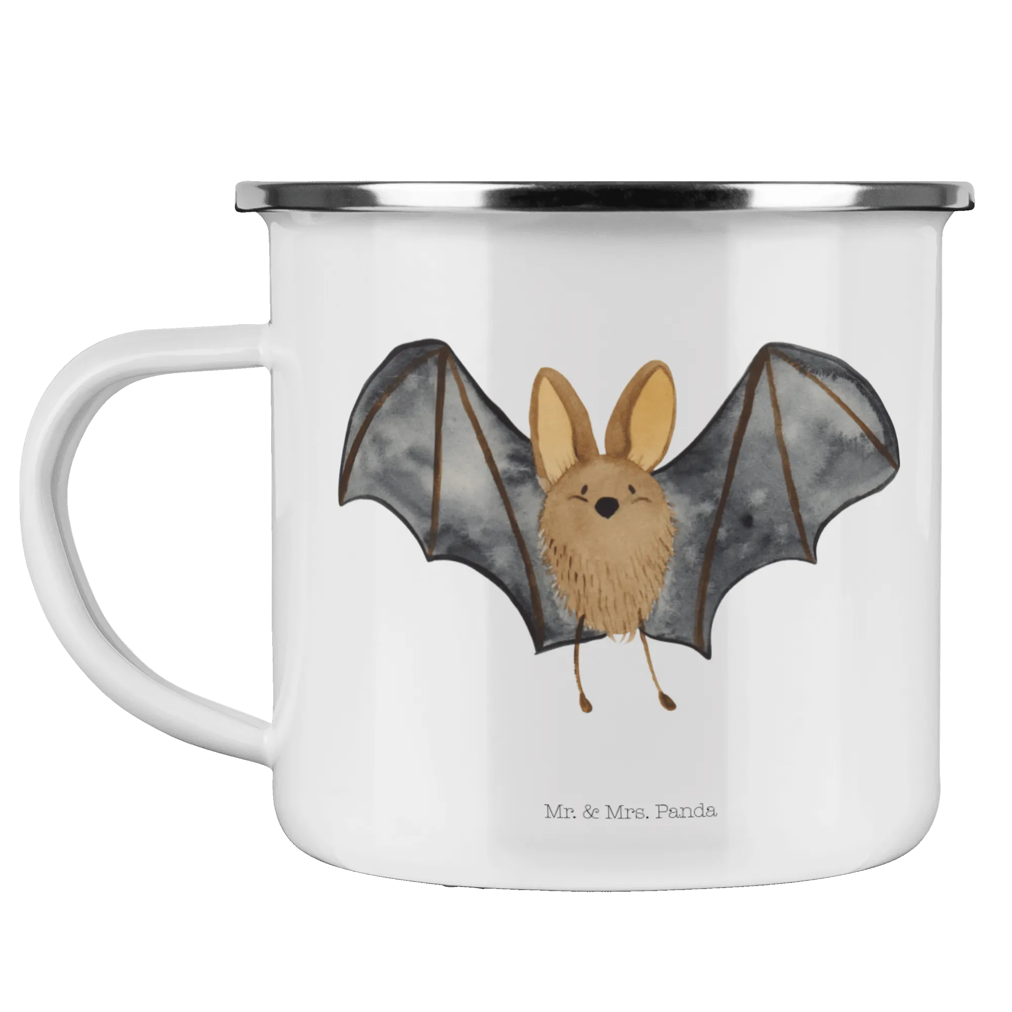 Introducing the enchanting Enamel Camping Mug featuring a delightful Bat Flapping Wings motif from the beloved Small World collection by Mr. & Mrs. Panda!