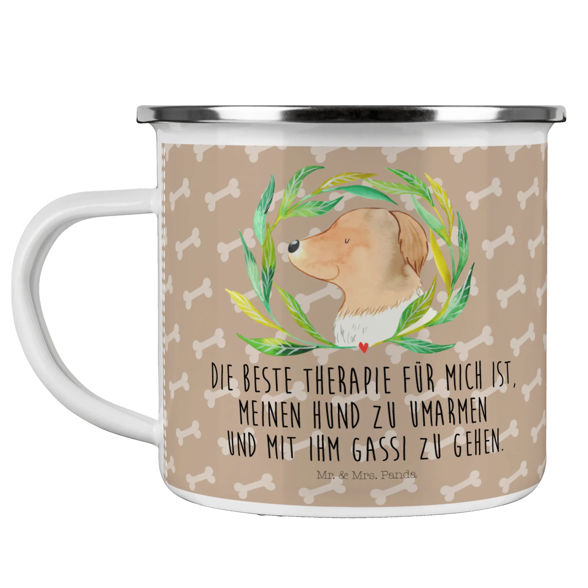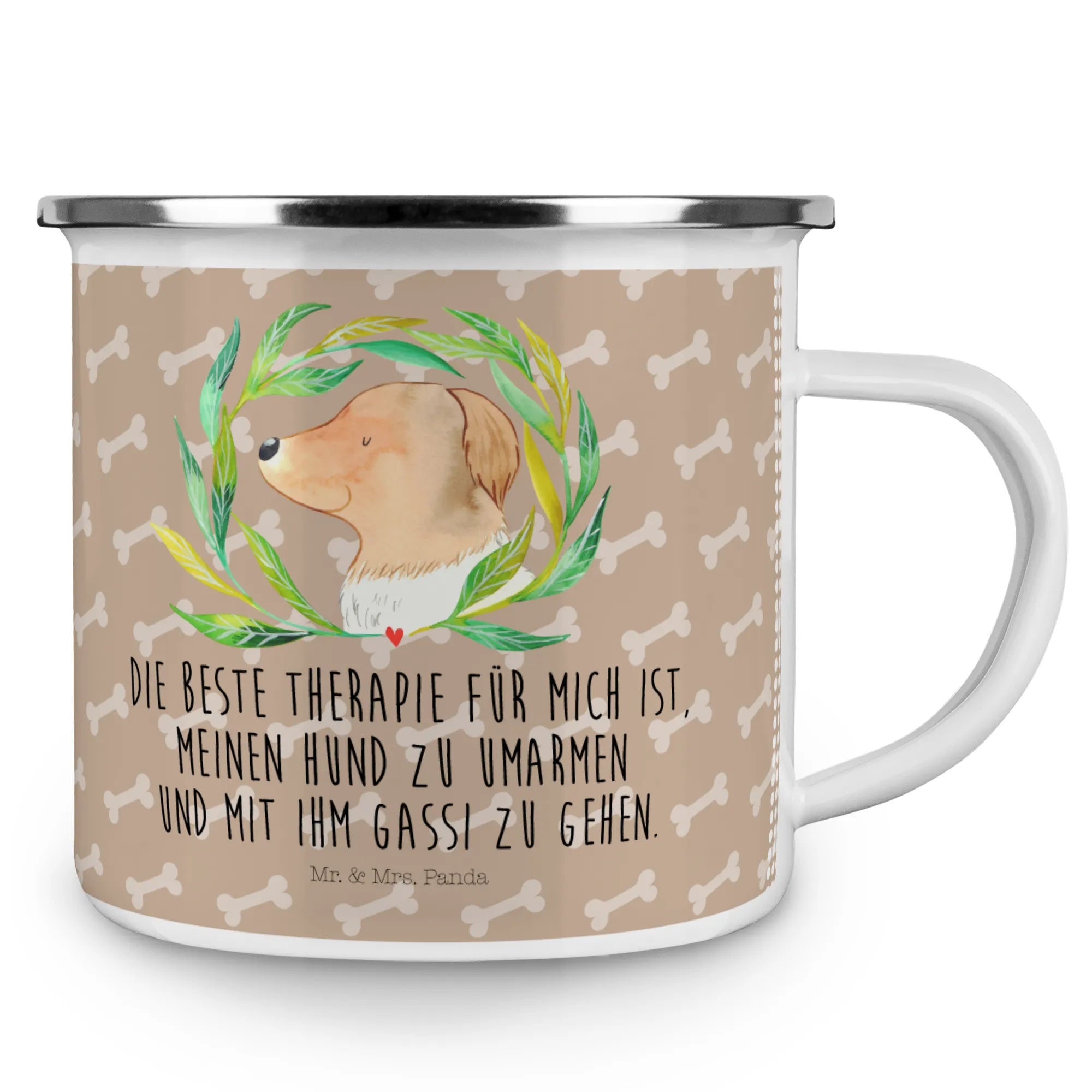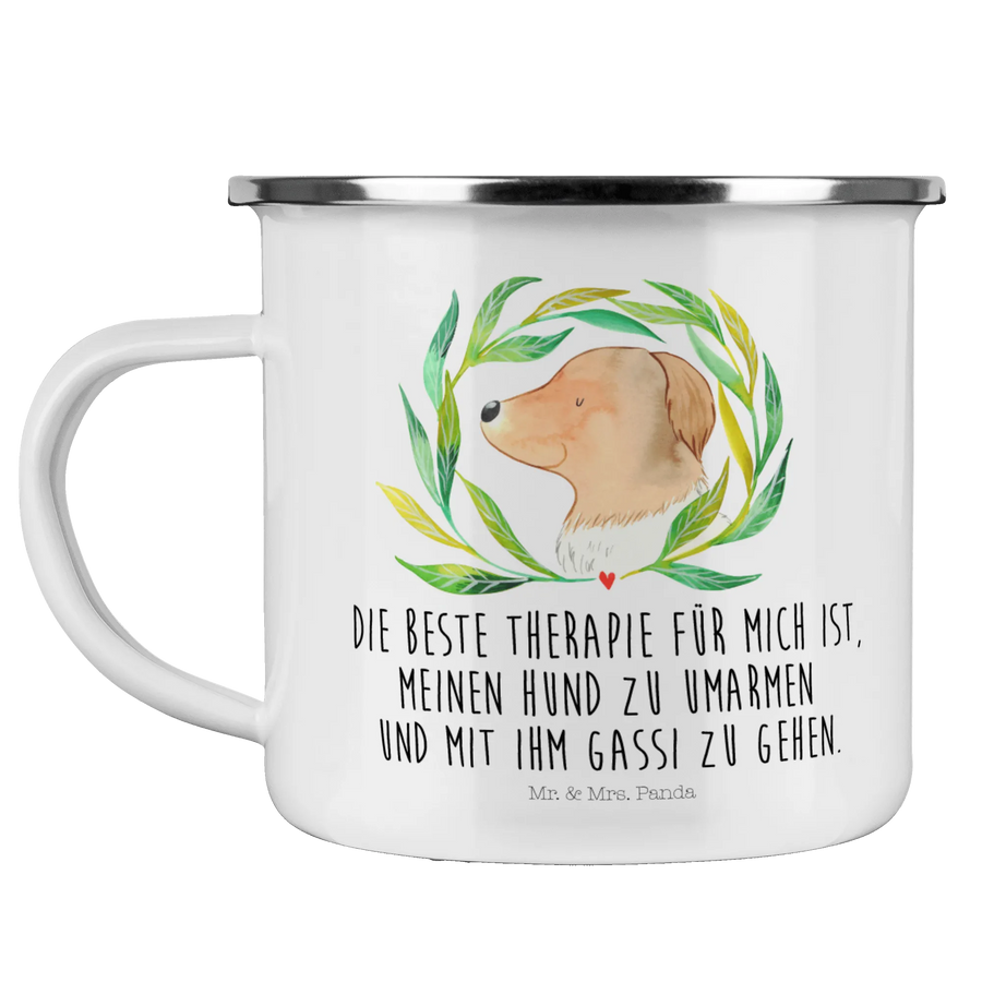 Enamel camping mug Dog Flower - with a saying - White