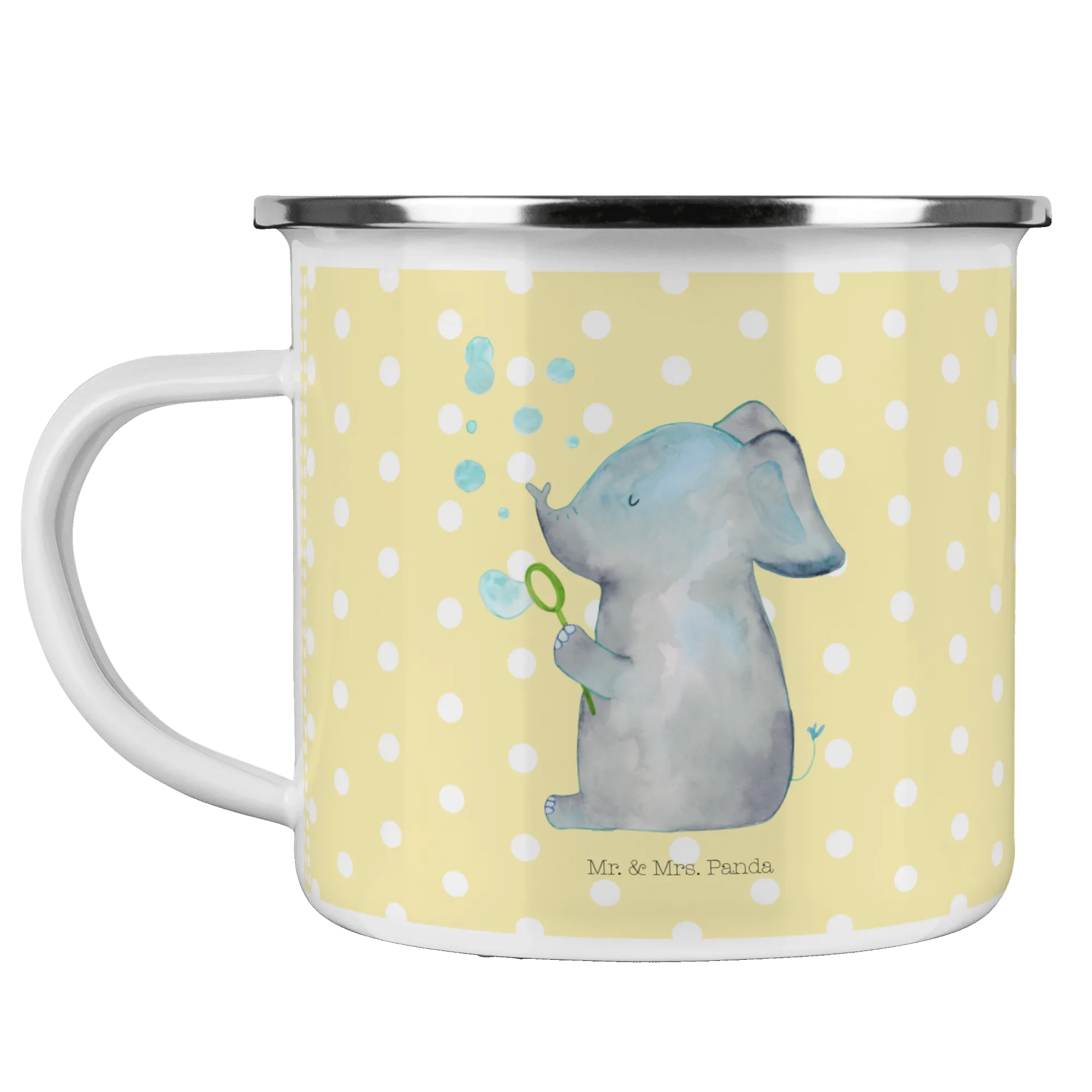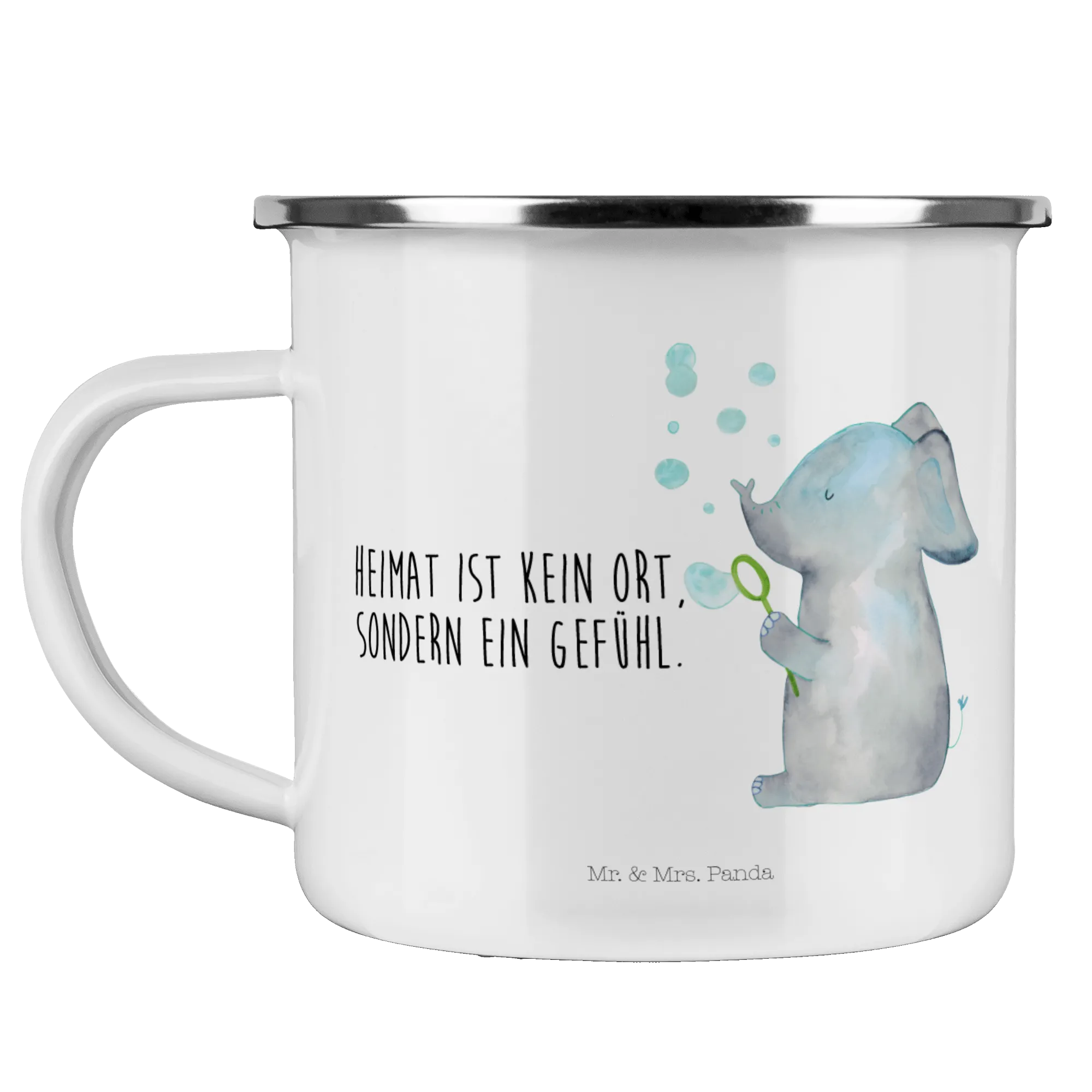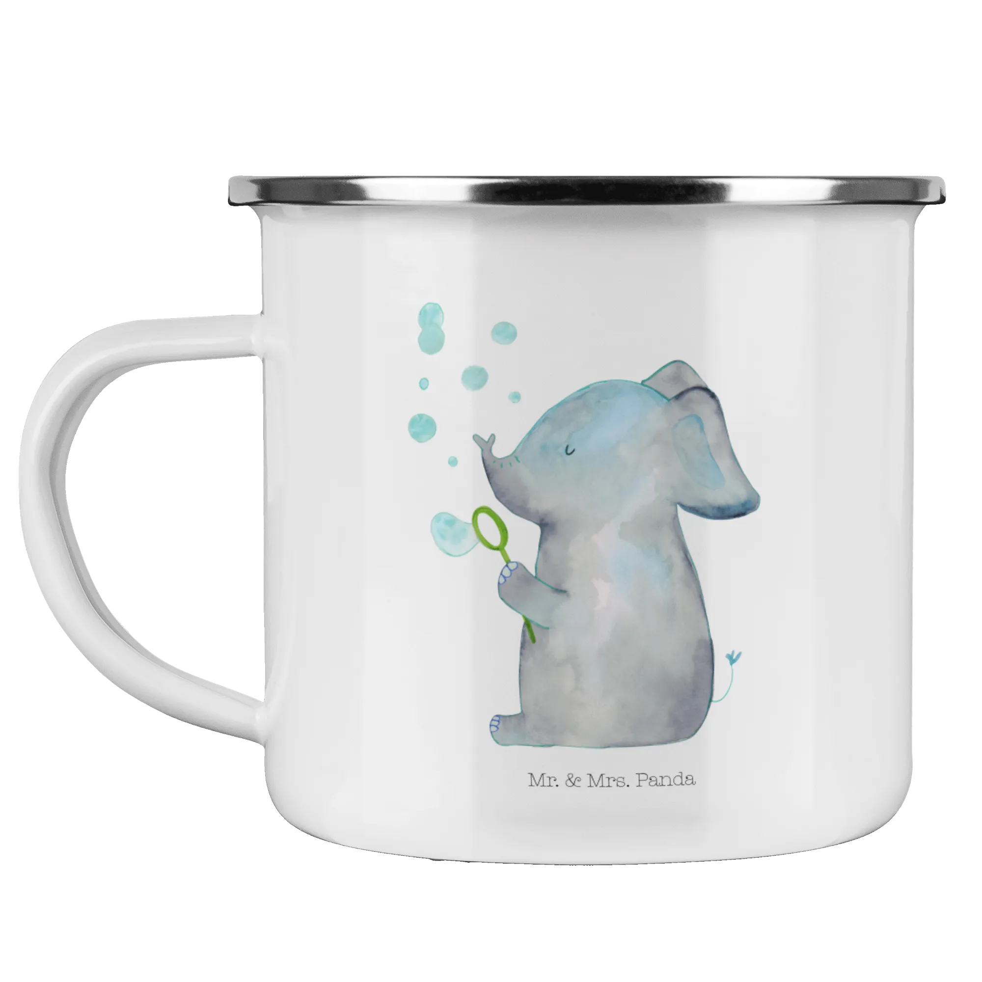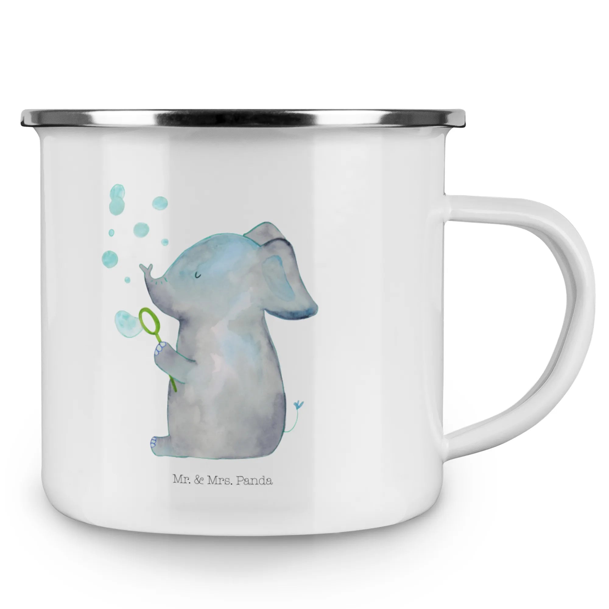 Enamel camping mug elephant soap bubbles - with a saying - White