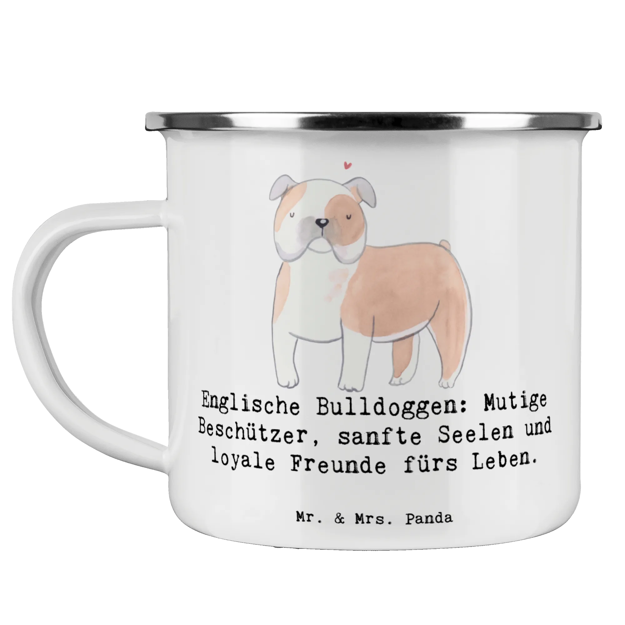 Enamel camping mug Englische Bulldoggen: Mutige Beschützer, sanfte Seelen und loyale Freunde fürs Leben. - White