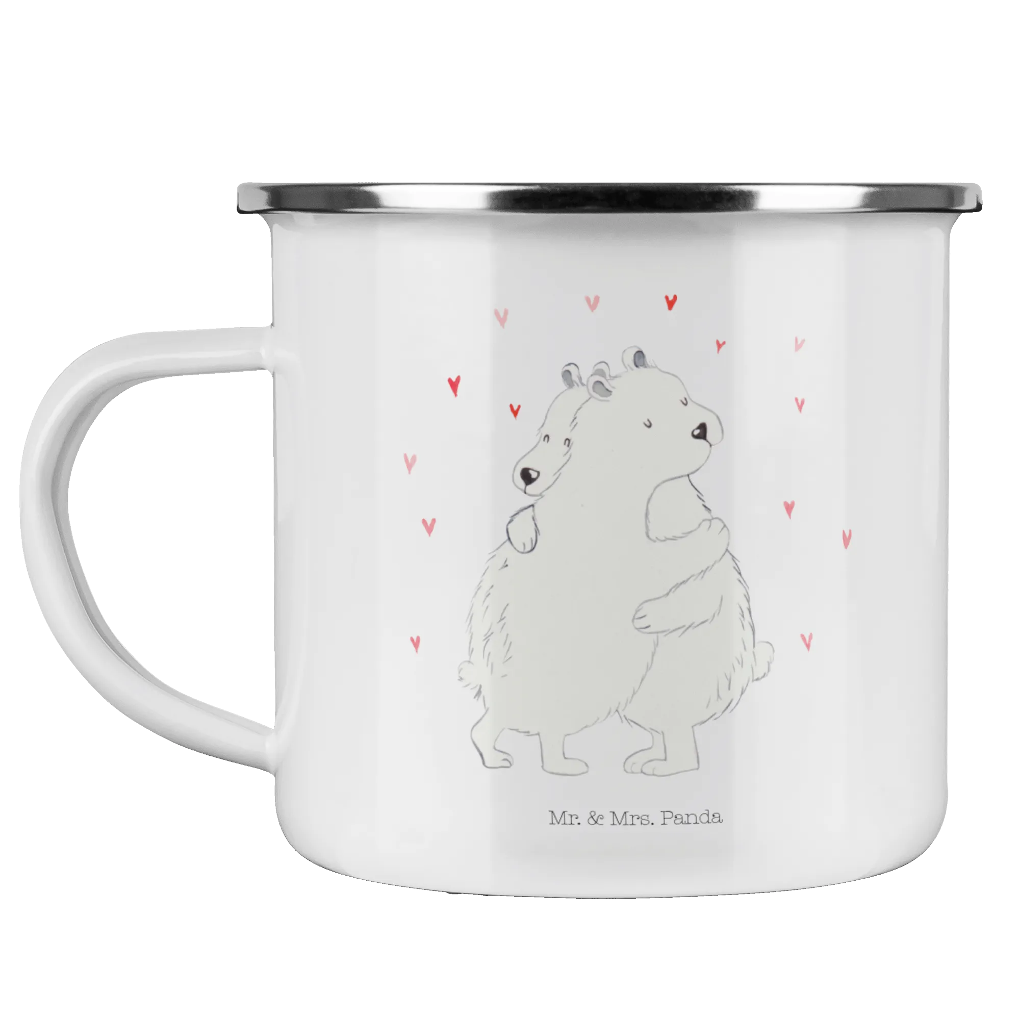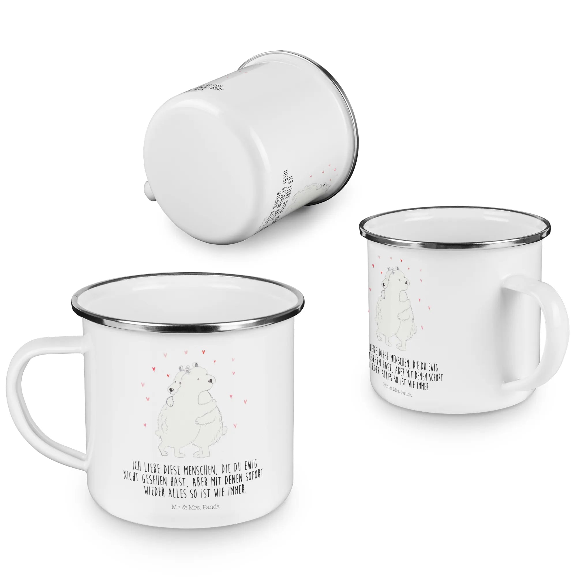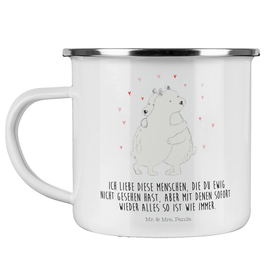 Enamel camping mug Icebear Embrace - with saying - White