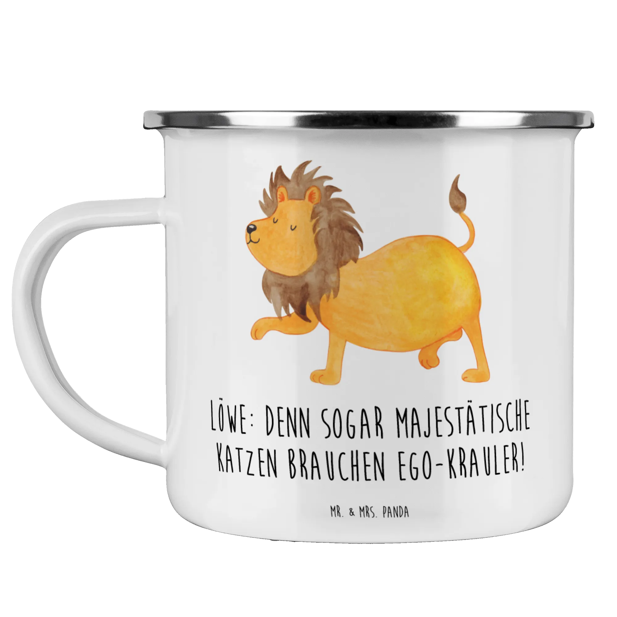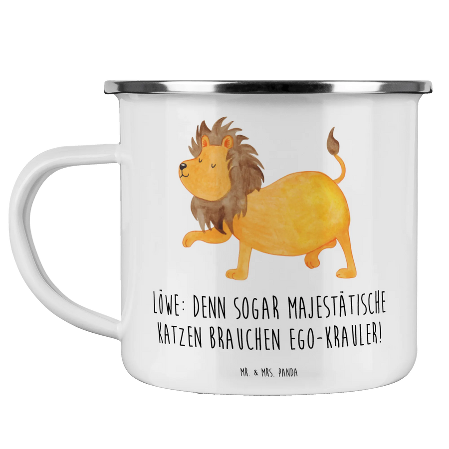 Enamel camping mug Löwe: Denn sogar Majestätische Katzen brauchen Ego-Krauler!