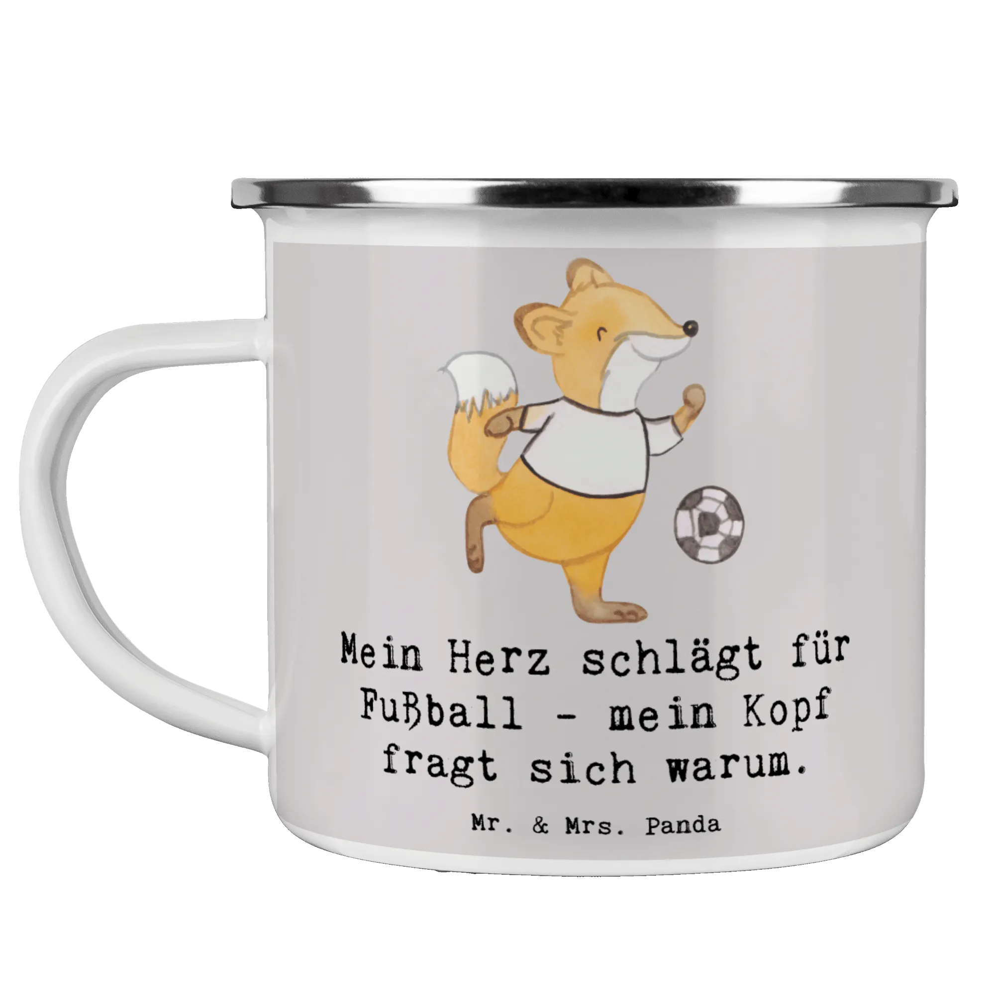 Enamel camping mug Mein Herz schlägt für Fußball - mein Kopf fragt sich warum. - White