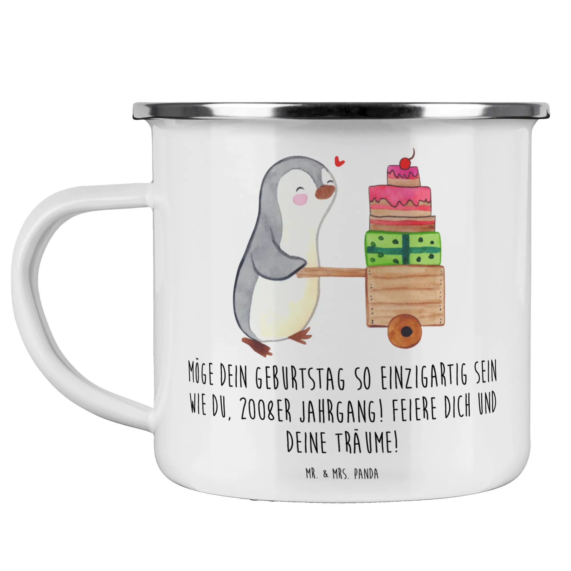 Enamel camping mug Möge dein Geburtstag so einzigartig sein wie du, 2008er Jahrgang! Feiere dich und deine Träume!