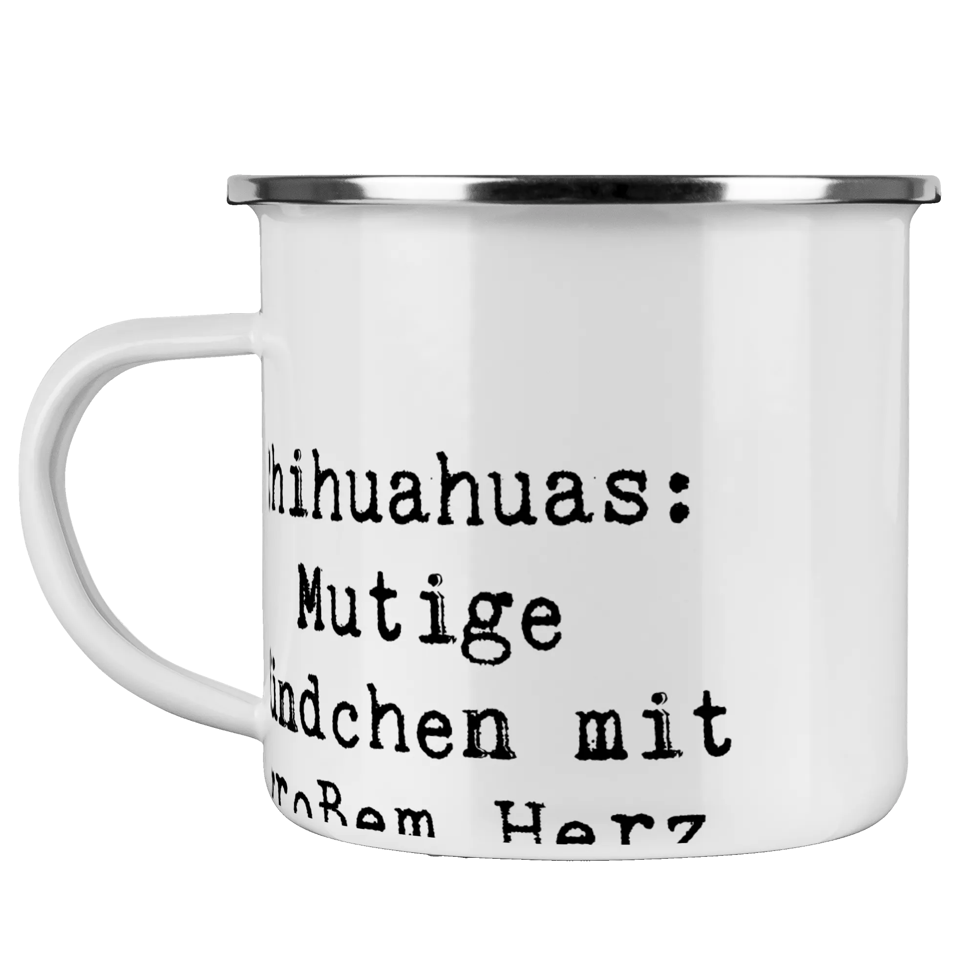 Enamel camping mug Saying Chihuahuas: Mutige Hündchen mit großem Herz