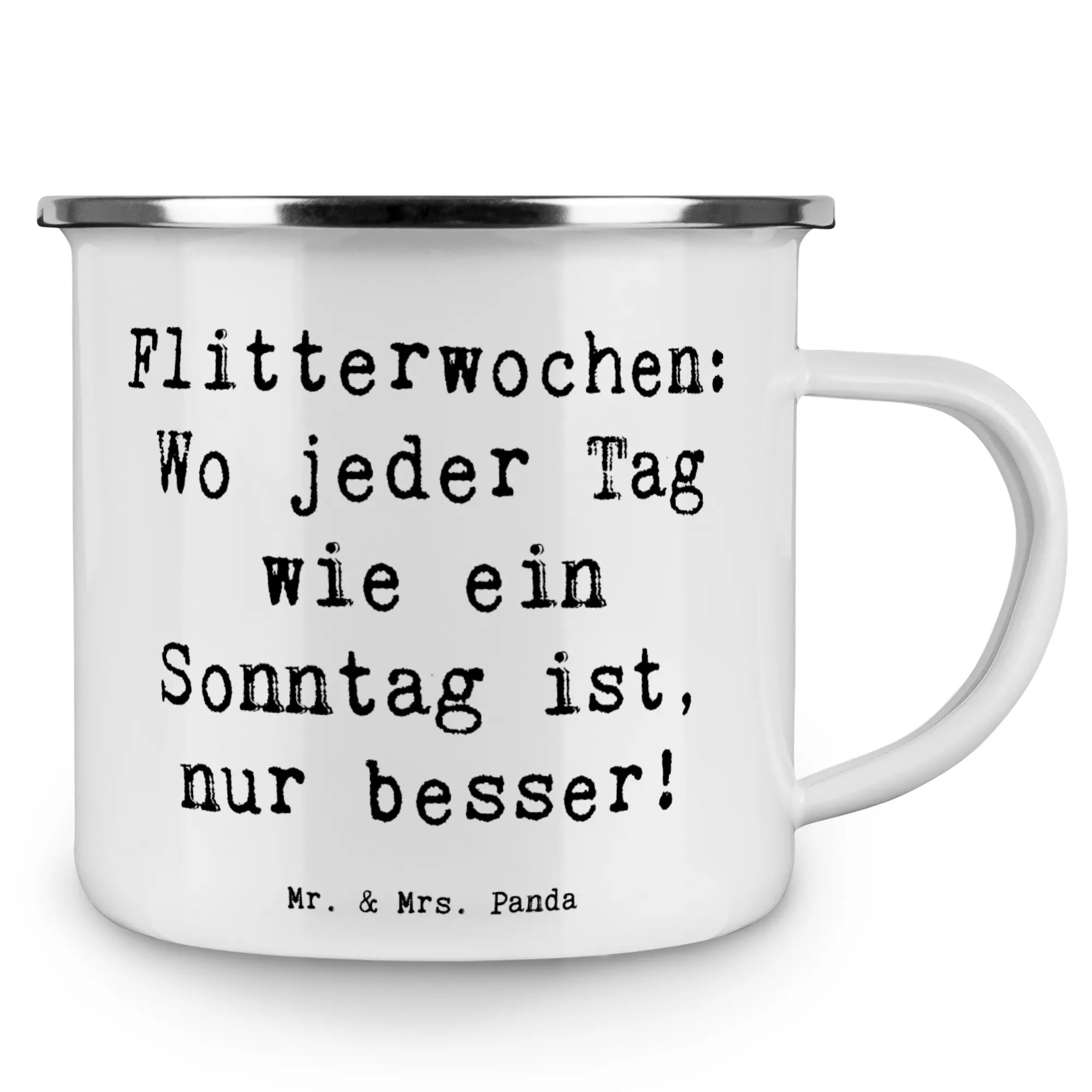 Enamel camping mug Saying Flitterwochen: Wo jeder Tag wie ein Sonntag ist, nur besser!