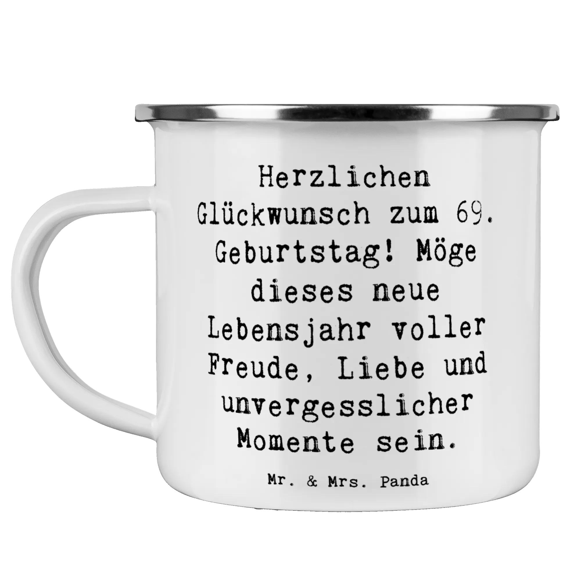 Enamel camping mug Saying Herzlichen Glückwunsch zum 69. Geburtstag! Möge dieses neue Lebensjahr voller Freude, Liebe und unvergesslicher Momente sein.