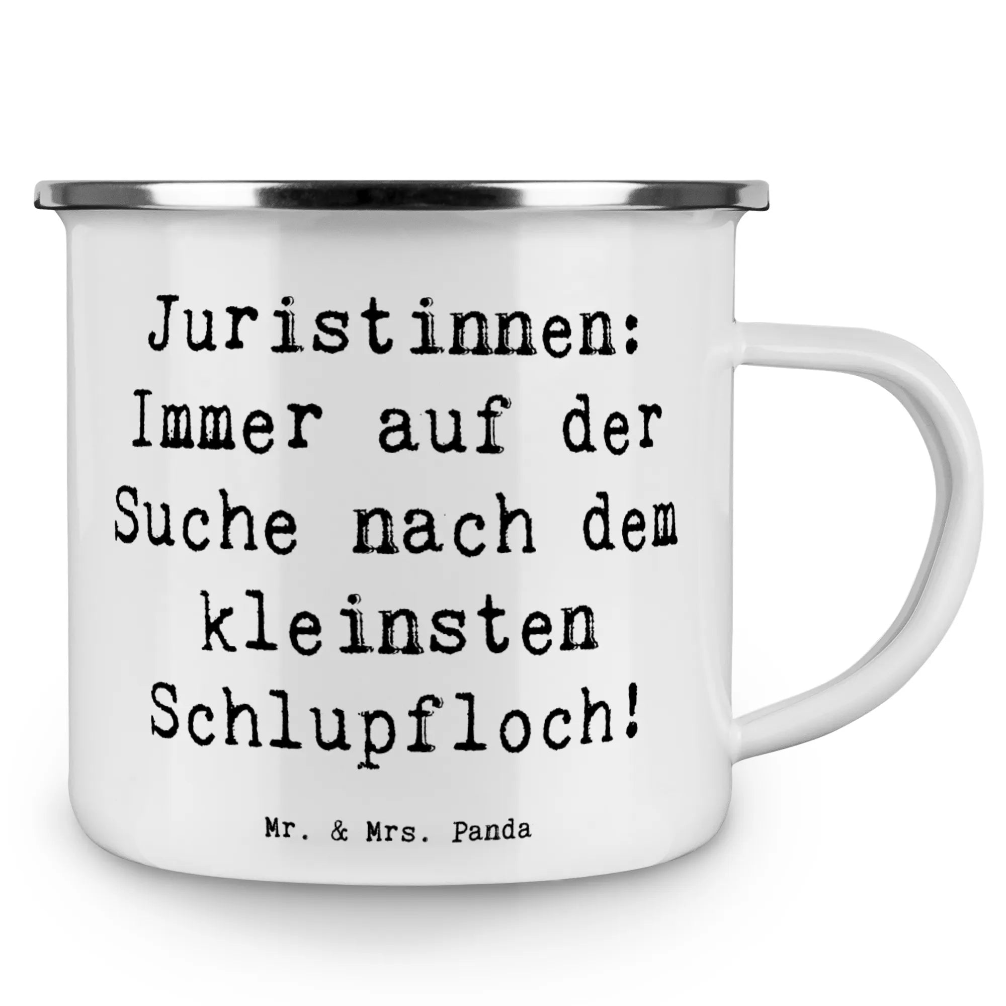 Enamel camping mug Saying Juristinnen: Immer auf der Suche nach dem kleinsten Schlupfloch!