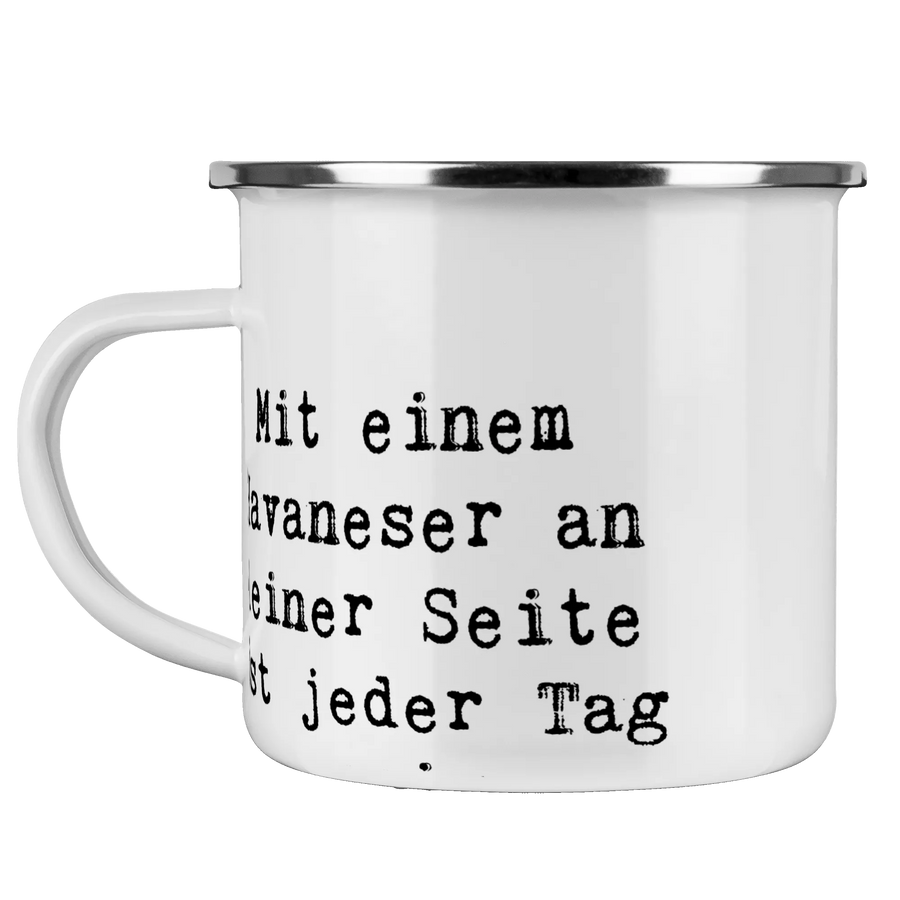 Enamel camping mug Saying Mit einem Havaneser an deiner Seite ist jeder Tag sonnig.