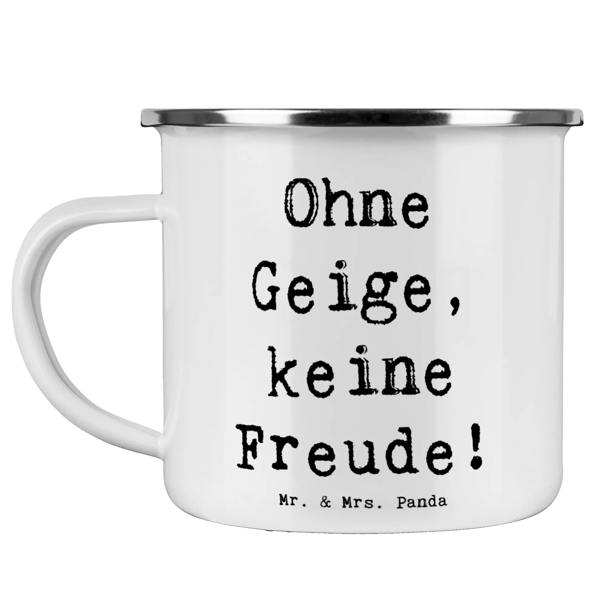 Enamel camping mug Saying Ohne Geige, keine Freude!