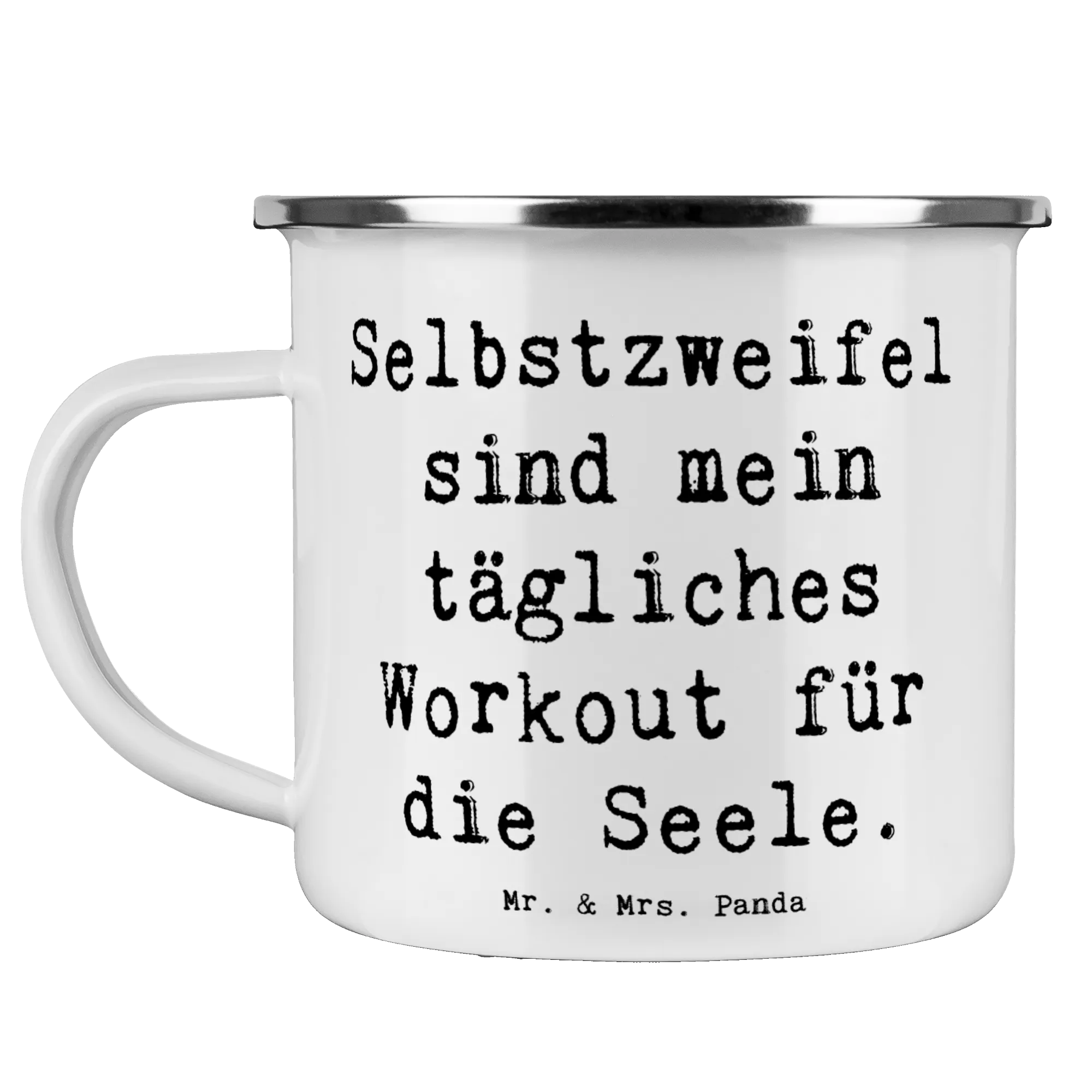 Enamel camping mug Saying Selbstzweifel sind mein tägliches Workout fü – Mr. & Mrs. Panda