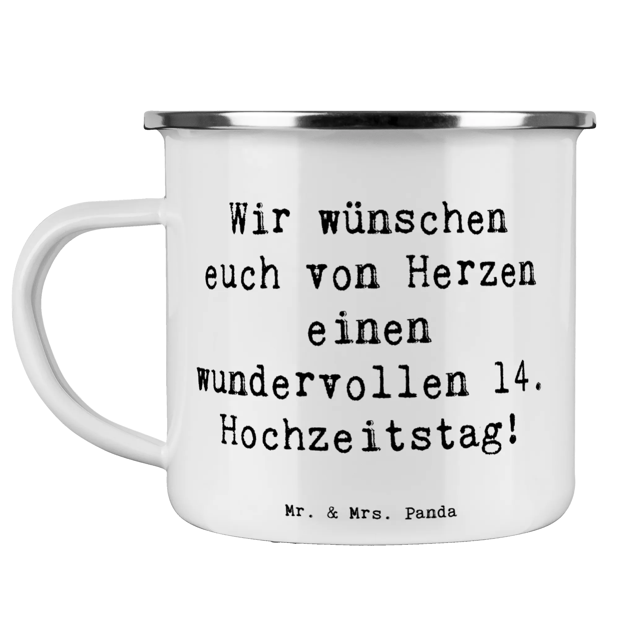 Enamel camping mug Saying Wir wünschen euch von Herzen einen wundervollen 14. Hochzeitstag!