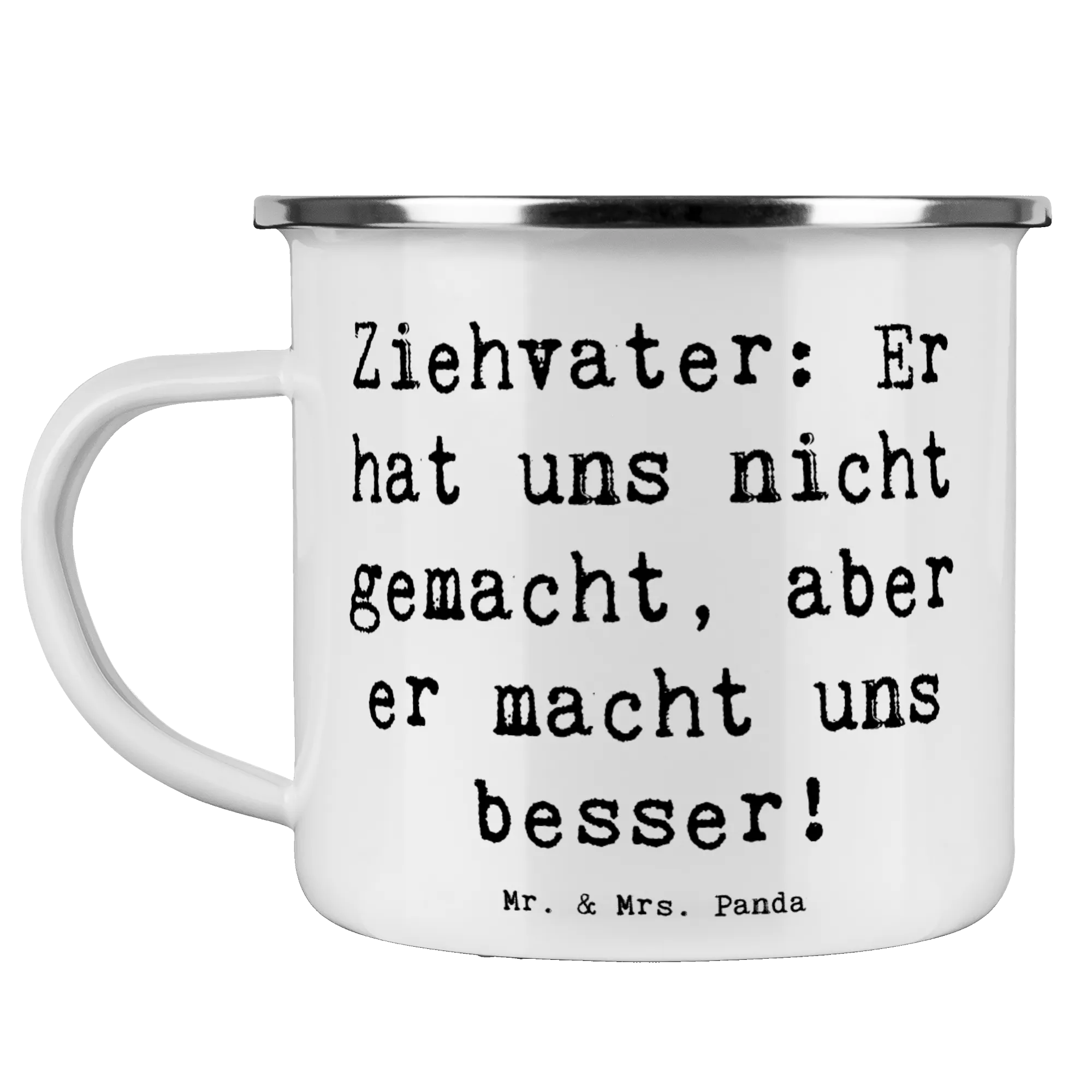 Enamel camping mug Saying Ziehvater: Er hat uns nicht gemacht, aber er macht uns besser!