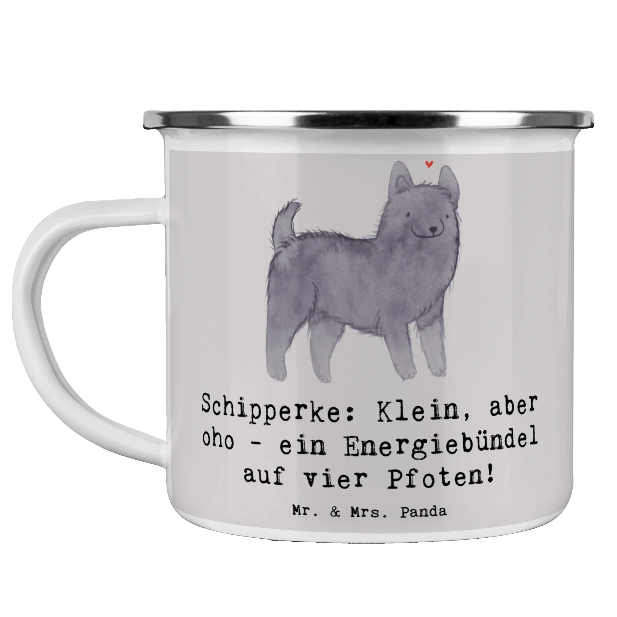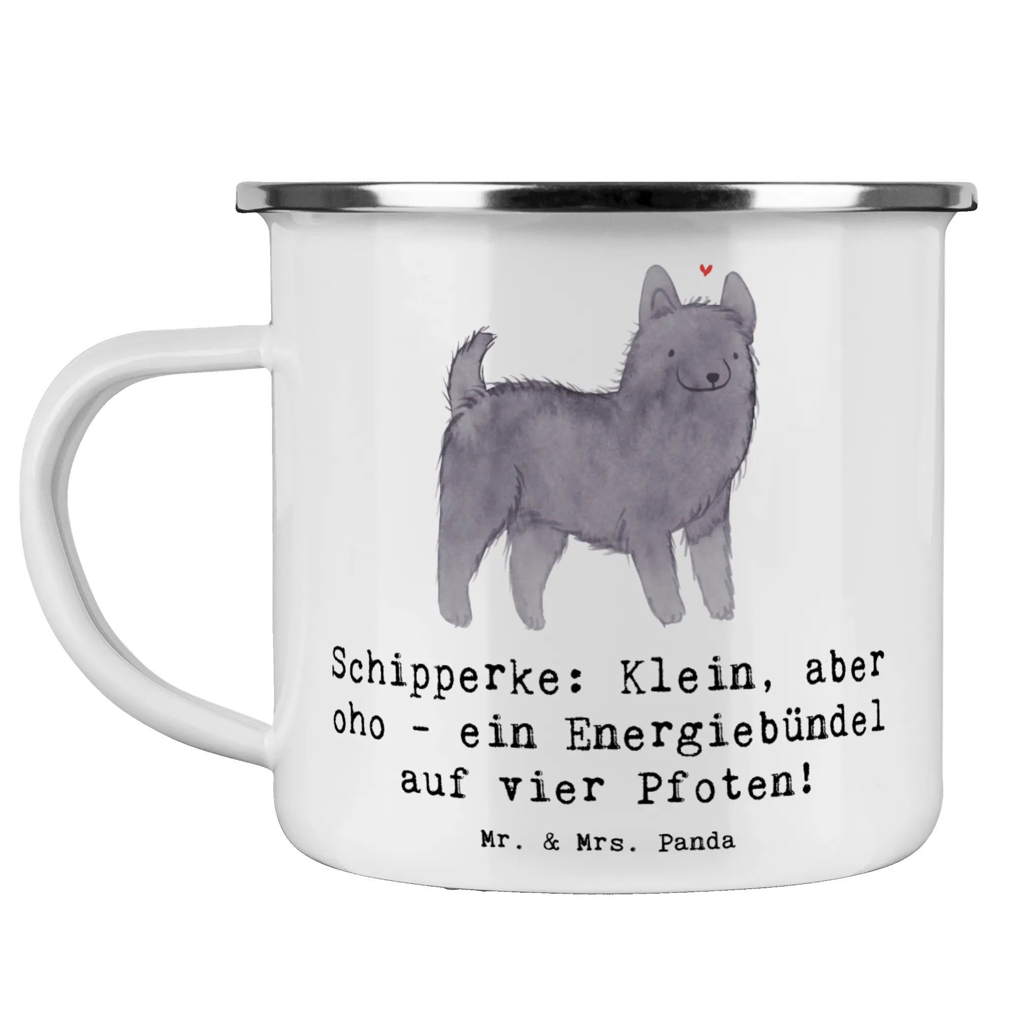 Enamel camping mug Schipperke: Klein, aber oho - ein Energiebündel auf vier Pfoten! - White