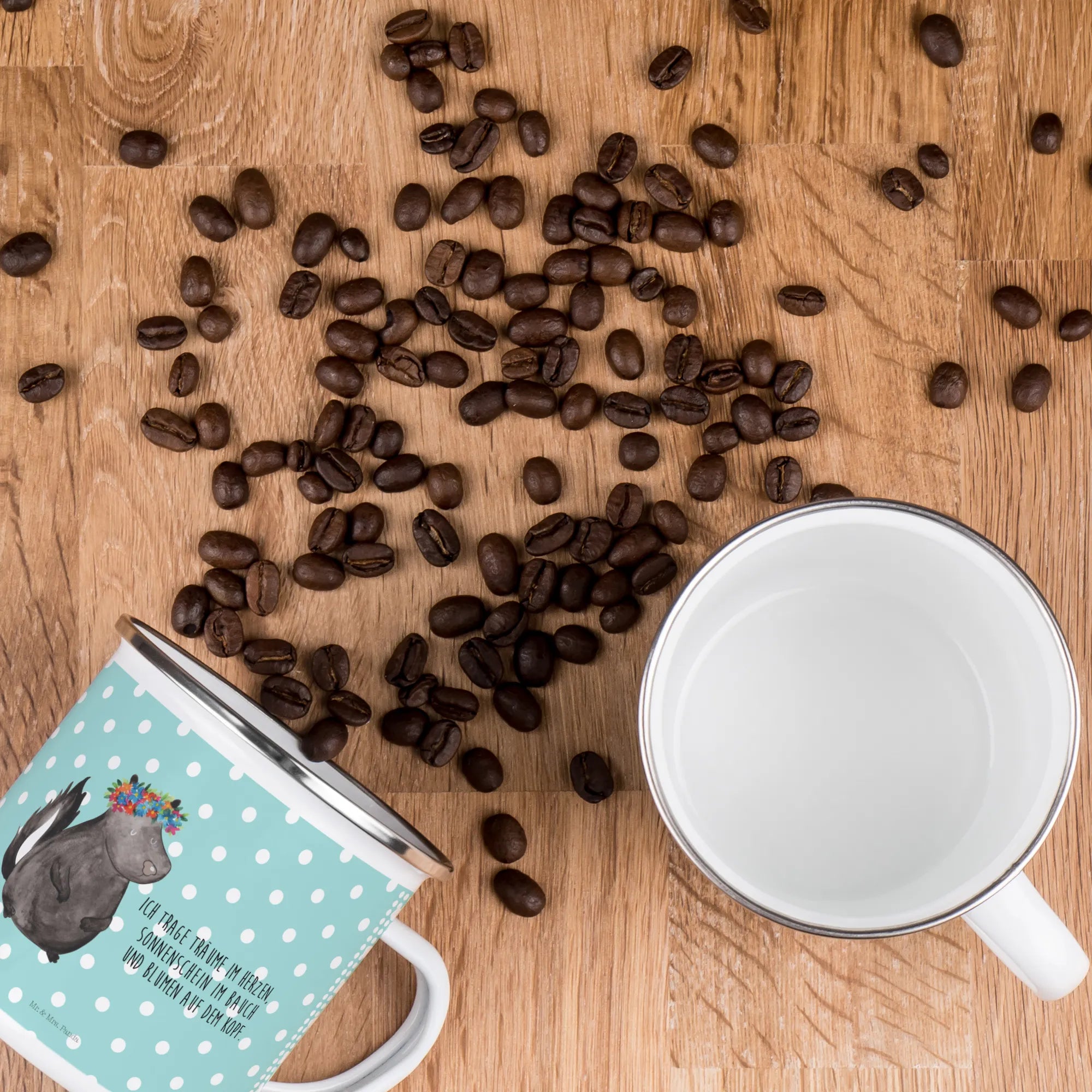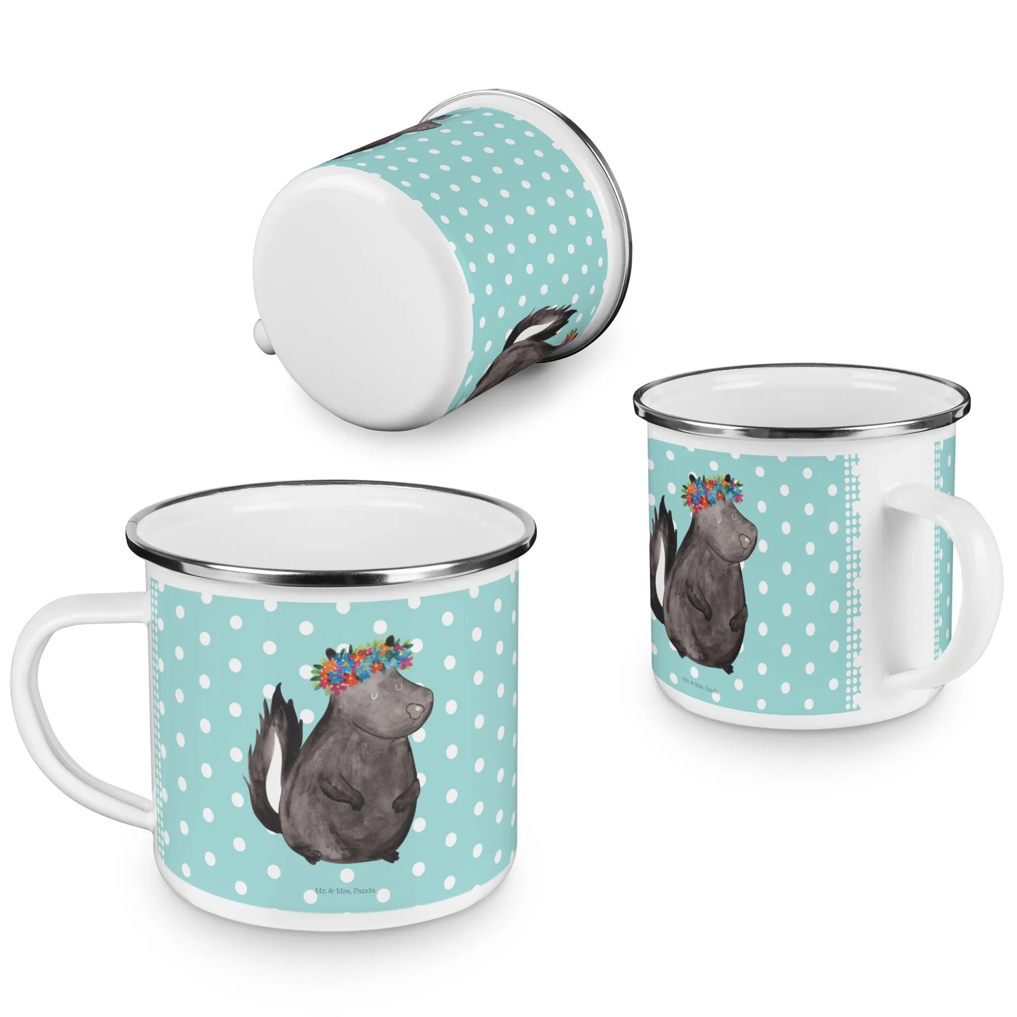 Introducing the delightful Enamel Camping Mug featuring our charming Skunk Flower Girl design from the Skunk Collection by Mr. & Mrs. Panda! This mug isn’t just for sipping coffee or tea; it’s a companion for every adventure, ideal for those who love the great outdoors. Whether you're embarking on a camping trip, hiking through the mountains, or enjoying a cozy evening by the campfire, this lightweight and durable enamel mug will be your new favorite vessel for hot and cold beverages alike.