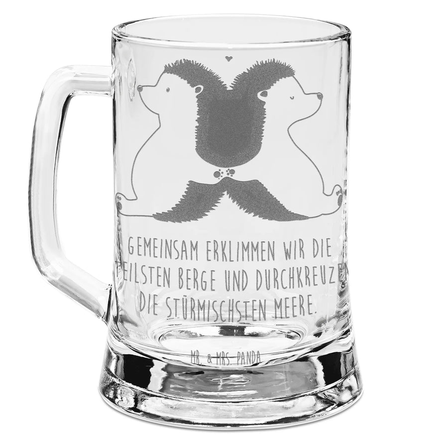 Engraved Beer Mug Hedgehogs holding hands - with saying