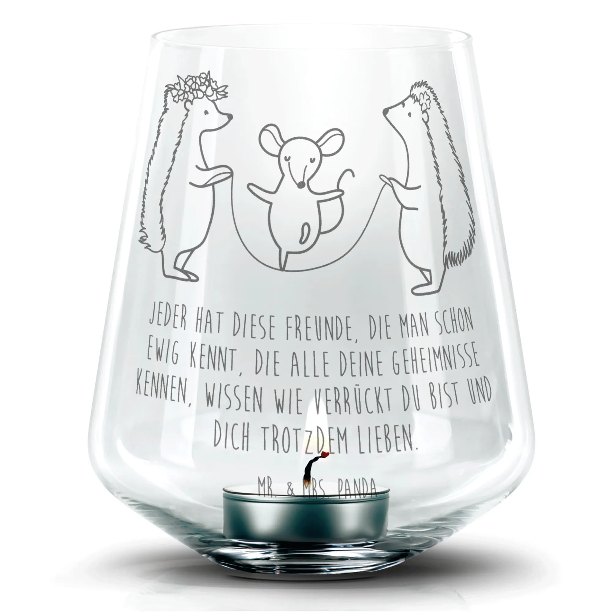 Entdecke das wunderschöne Gravur Windlicht von Mr. & Mrs. Panda, das durch seine edle Glasverarbeitung und die liebevoll gestalteten Gravuren besticht. Mit einer Höhe von 103 mm und einem Durchmesser von 88 mm ist es das perfekte Teelicht für besondere Anlässe oder als Geschenk für einen geliebten Menschen. Das Windlicht kann mit jedem Teelicht oder einer kleinen Kerze bestückt werden und schafft eine behagliche Atmosphäre in jedem Raum. Die hochwertige Lasergravur sorgt für einen einzigartigen Matteffekt, der das Licht auf zauberhafte Weise reflektiert. Die großzügige Füllmenge von 400 ml unterstützt die Verwendung mit verschiedenen Kerzen und sorgt dafür, dass du lange Freude an diesem besonderen Stück hast. Nach der Verwendung ist das Windlicht spülmaschinengeeignet und somit sehr pflegeleicht. Lass dein Zuhause erstrahlen mit diesem romantischen und charmanten Windlicht von Mr. & Mrs. Panda!