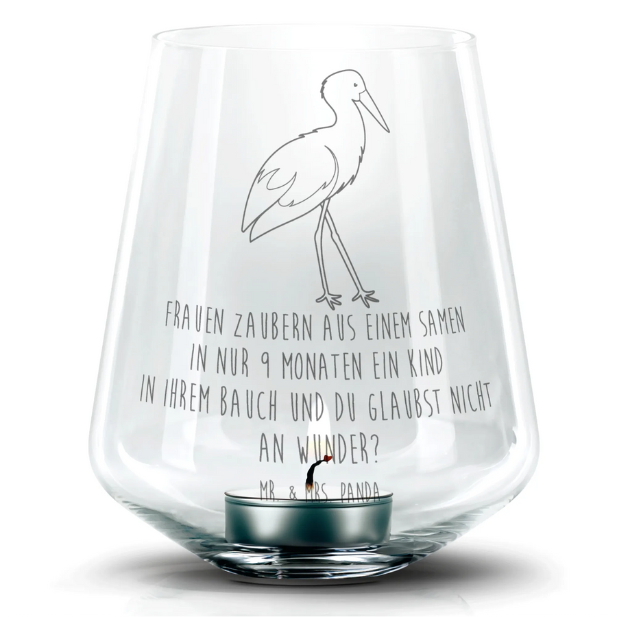 Zauberhaftes Gravur Windlicht „Storch“ aus der Small World Kollektion von Mr. & Mrs. Panda