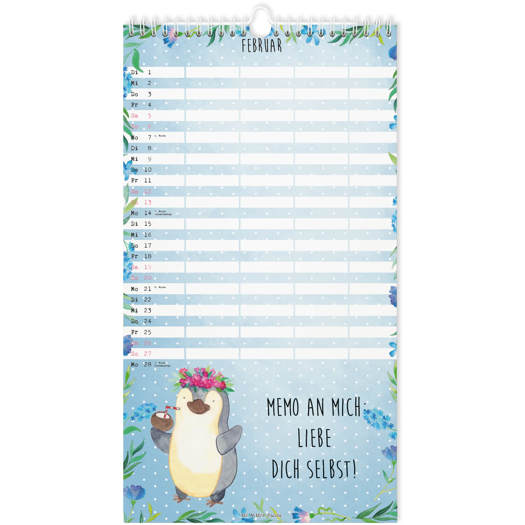 🐼 Wall Planner: Family organizer with five columns, monthly quotes, premium paper and glossy protective front.