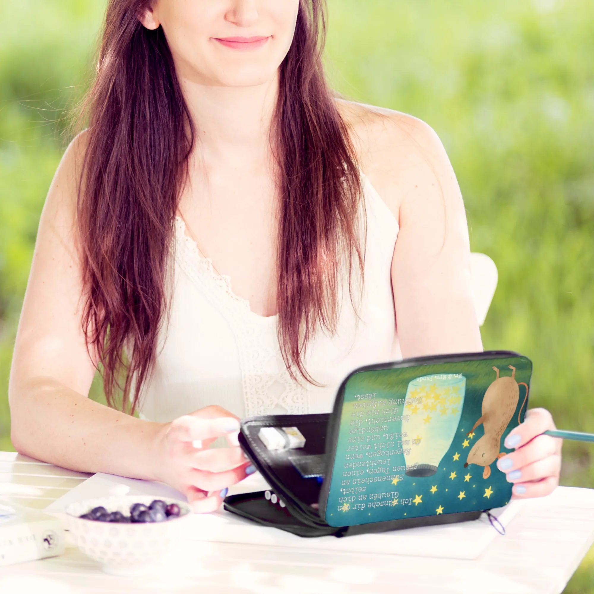 Die wunderschöne Federmappe von Mr. & Mrs. Panda kombiniert Funktionalität mit kreativem Design. Mit großzügigen Abmessungen von 210 mm x 210 mm x 40 mm bietet sie Platz für all deine Schreibutensilien und lässt sich dank des leichten Gewichts von 383 g bequem transportieren. Die Federmappe ist aus strapazierfähiger Baumwolle und hochwertigen Kunstfasern gefertigt und punktet mit leuchtenden Farben und inspirierenden Sprüchen. Ideal für die Schule oder als Geschenk, ist sie komplett ausgestattet mit Buntstiften, Filzstiften, Bleistiften, einem Lineal, einem Radiergummi und einem Spitzer. So bist du bestens für den Unterricht gerüstet. Zudem kann sie ganz einfach mit einem feuchten Lappen gereinigt werden, was sie besonders pflegeleicht macht. Ein absolutes Must-Have für Schulanfänger und kreative Köpfe!