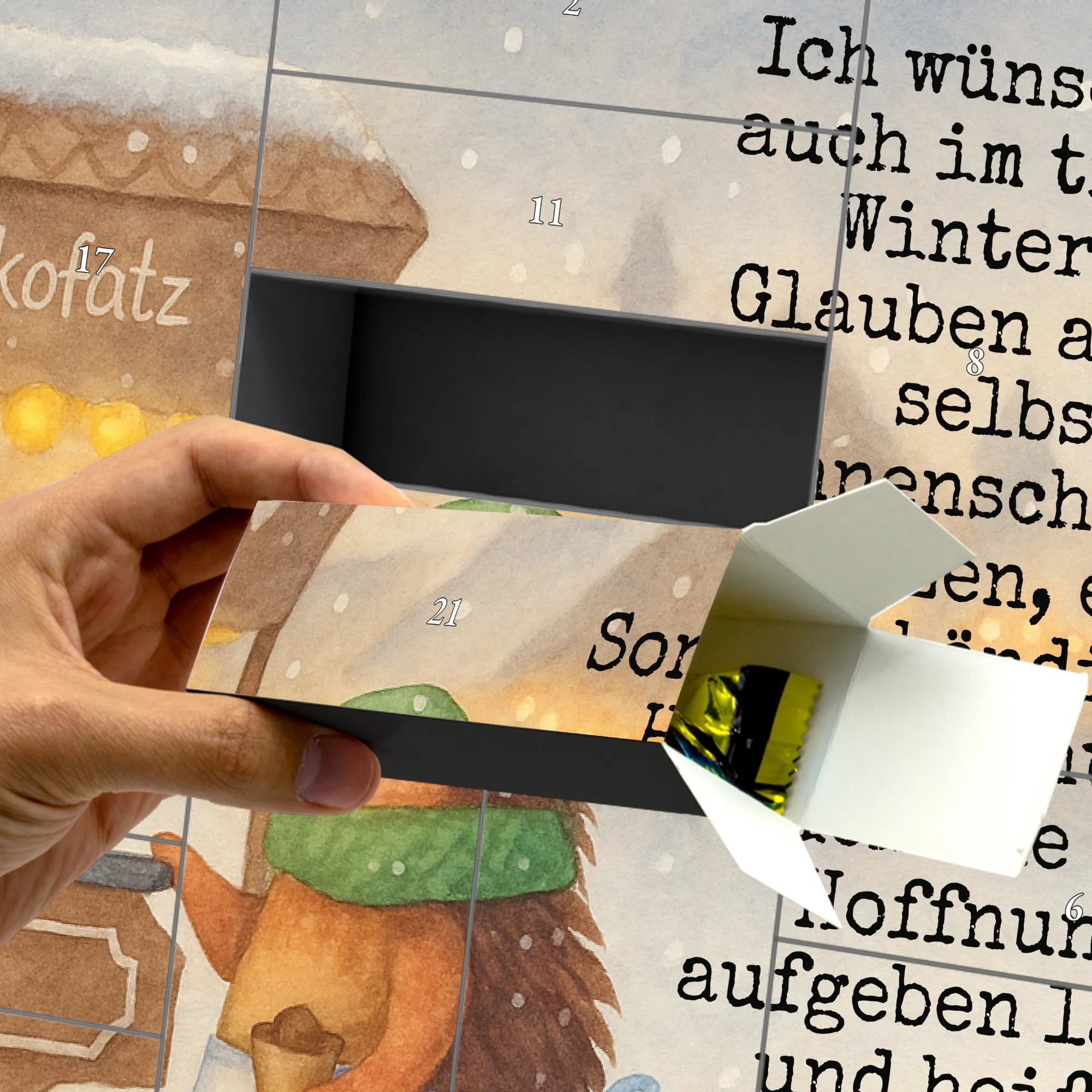 Fillable advent calendar hedgehog Chestnuts Design - with saying