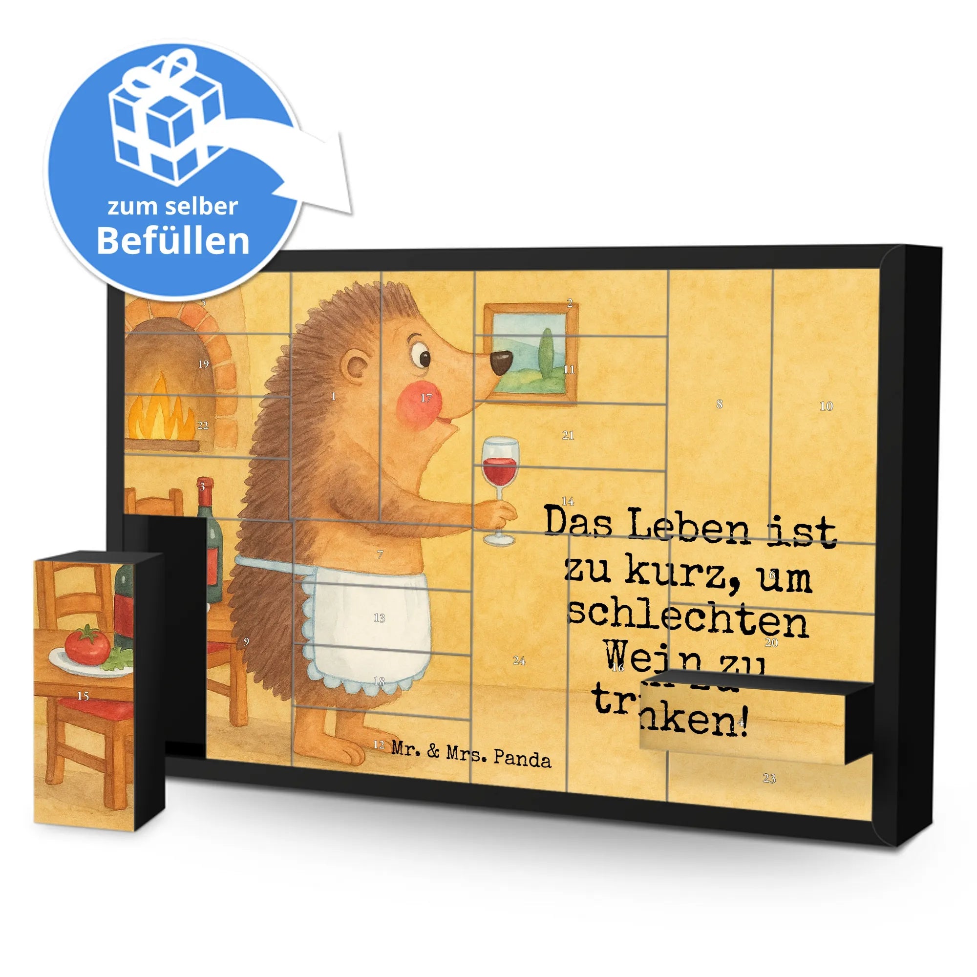 Advent wird genussvoll: Unser befüllbarer Adventskalender „Igel mit Wein“ aus der Small World Kollektion von Mr. & Mrs. Panda macht die Vorweihnachtszeit besonders charmant. Das liebevoll gezeichnete Motiv zeigt einen kleinen Igel, der aus einem Rotweinglas schlürft, begleitet vom frechen Spruch „Das Leben ist zu kurz, um schlechten Wein zu trinken!“ – perfekt für Weinliebhaber und alle, die gern mit Humor genießen. 🍷