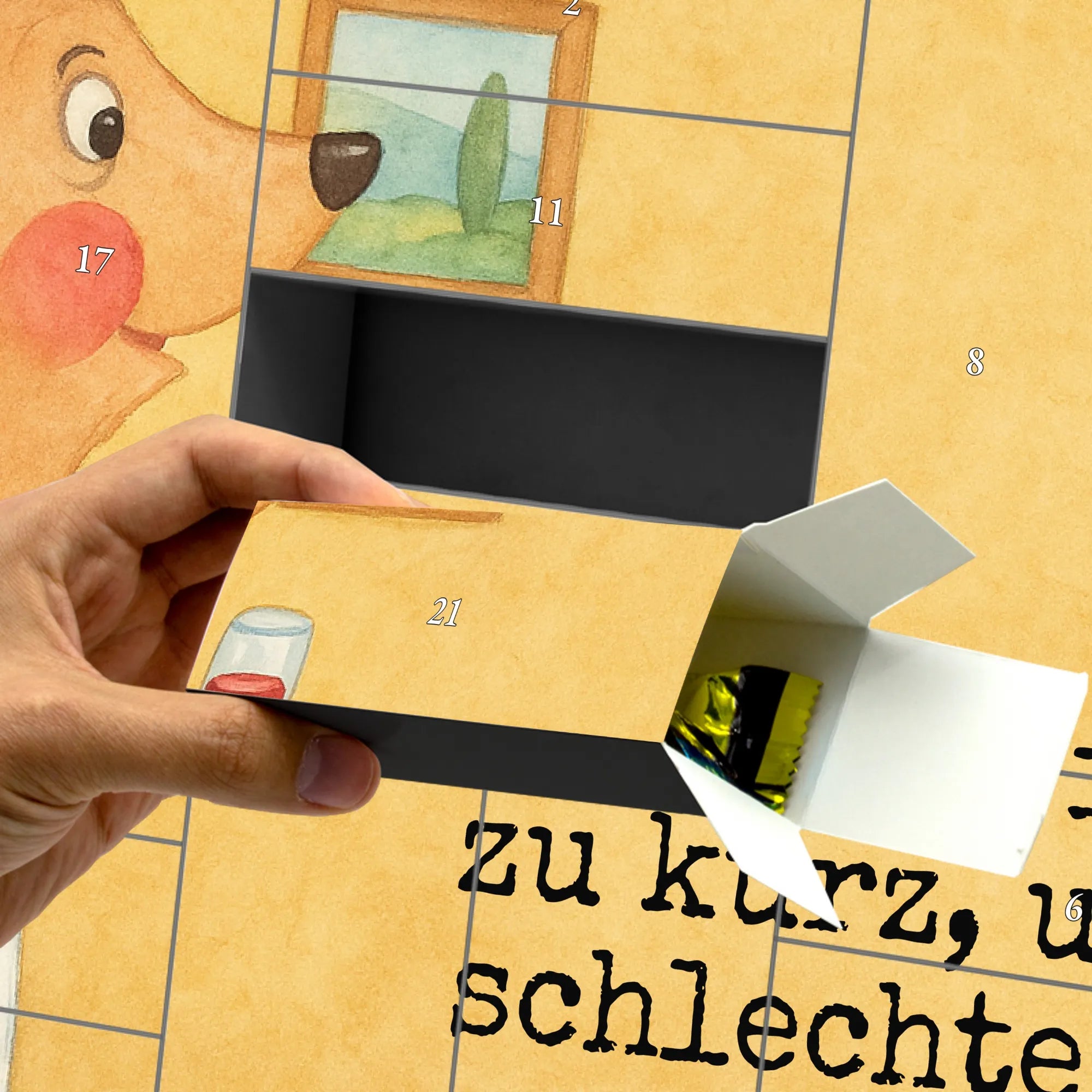 Wunderschöner, befüllbarer Adventskalender von Mr. & Mrs. Panda – perfekt, um die Vorweihnachtszeit ganz persönlich zu gestalten! Dieser liebevoll gestaltete Befüllbarer Adventskalender ist bedruckt mit schönen Sprüchen und zauberhaften Motiven von Mr. & Mrs. Panda. Auf der Frontseite begrüßt dich eine herzliche Zeichnung von Mrs. Panda, die dem Kalender seinen unverwechselbaren Charme verleiht. Der Kalender bietet 24 einzelne Schachteln zum Selbstbefüllen, ideal für kleine Überraschungen, Süßigkeiten oder persönliche Botschaften. Hergestellt aus stabilem Adventskalender Karton, überzeugt er durch brillante Druckqualität mit seidenmatter Oberfläche, die Farben und Details besonders schön zur Geltung bringt. Der Kalender ist nicht personalisierbar und wird ohne Füllung geliefert – so kannst du ihn ganz nach deinen Wünschen befüllen. Die praktische Aufstellvorrichtung sorgt dafür, dass der Kalender sicher und dekorativ steht. Maße: Breite: 619 mm, Höhe: 405 mm, Tiefe: 50 mm. Ob als Geschenk für die Familie, für Freunde oder als hübsche Deko für dein Zuhause – dieser Adventskalender zaubert Vorfreude und ist dabei robust und liebevoll gestaltet. Schenke dir oder deinen Liebsten jeden Tag im Advent ein kleines Lächeln mit diesem charmanten Begleiter von Mr. & Mrs. Panda.