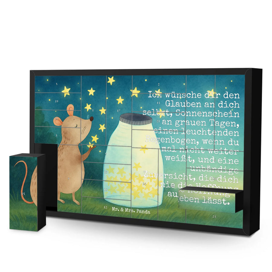 Dieser Adventskalender zum Selbstbefüllen von Mr. & Mrs. Panda erzählt eine kleine, zauberhafte Geschichte: Eine niedliche Maus sitzt vor einem Glas voller funkelnder Sterne und lässt sie in die Welt fliegen. Das Motiv wurde liebevoll von Mrs. Panda handgezeichnet und bringt Wärme, Hoffnung und kindliche Neugier in Dein Zuhause. 🌟🐭