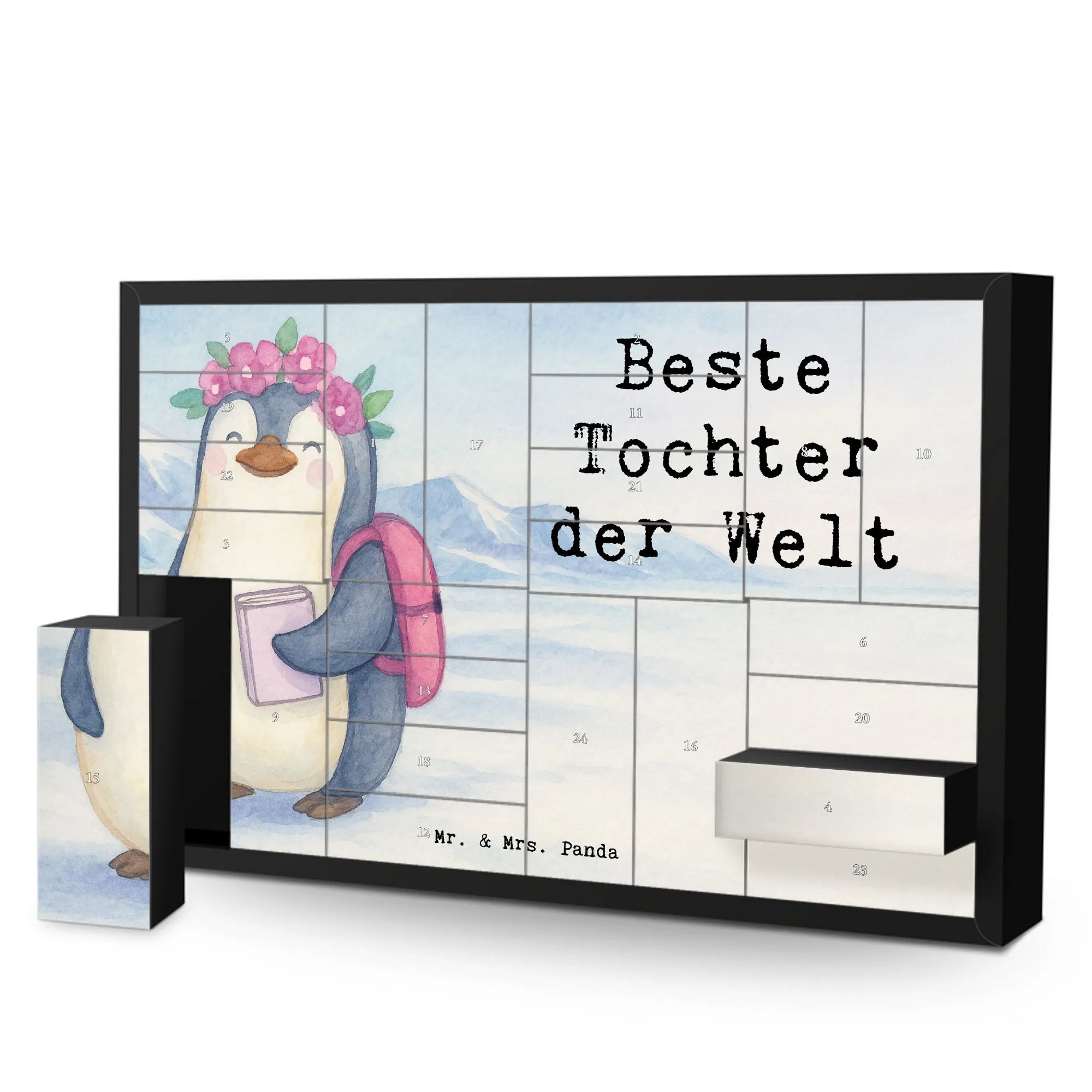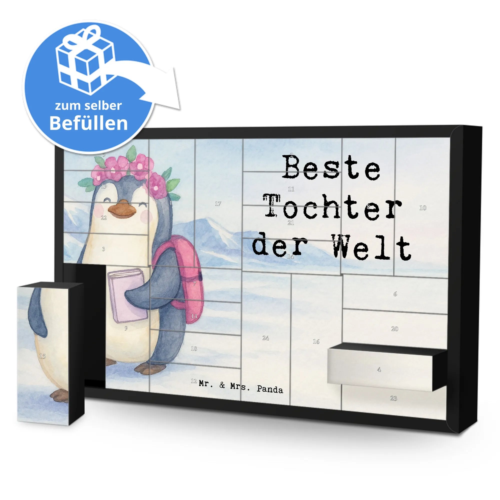 Verschenke Vorfreude: Unser befüllbarer Adventskalender Pinguin „Beste Tochter der Welt“ von Mr. & Mrs. Panda ist die perfekte Geschenkidee für deine Tochter. Der niedliche Pinguin mit Blumenkranz, Rucksack und Buch und der liebevolle Spruch „Beste Tochter der Welt“ machen diesen Adventskalender zum liebevollen Blickfang in der Vorweihnachtszeit.