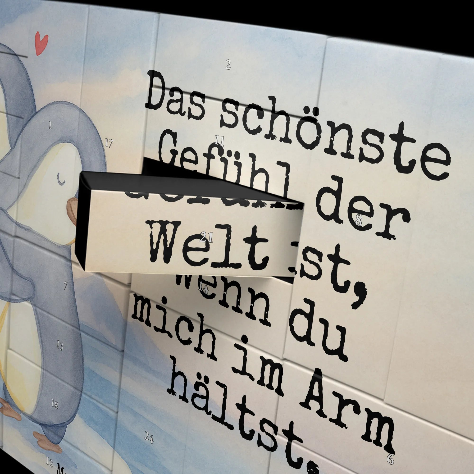 In this delightful motif, two charming penguins embrace in a warm hug, embodying the essence of love and togetherness. The soft gray and beige hues, accented with a little red heart, create a cozy background that resonates with the feeling of affection. Their round, friendly faces and sparkling eyes radiate warmth and comfort, making this piece the perfect Valentine's Day gift or a thoughtful love gift for anniversaries. Imagine gifting this to your beloved, expressing how their embrace brings you the most beautiful feeling in the world: "Das schönste Gefühl der Welt ist, wenn du mich im Arm hältst." It's a tender reminder of the bonds we cherish and the moments we share. Whether it's a token of love for your boyfriend or a special gift for your girlfriend, these penguins symbolize the joy of being together, sharing laughter, and making memories that last a lifetime.