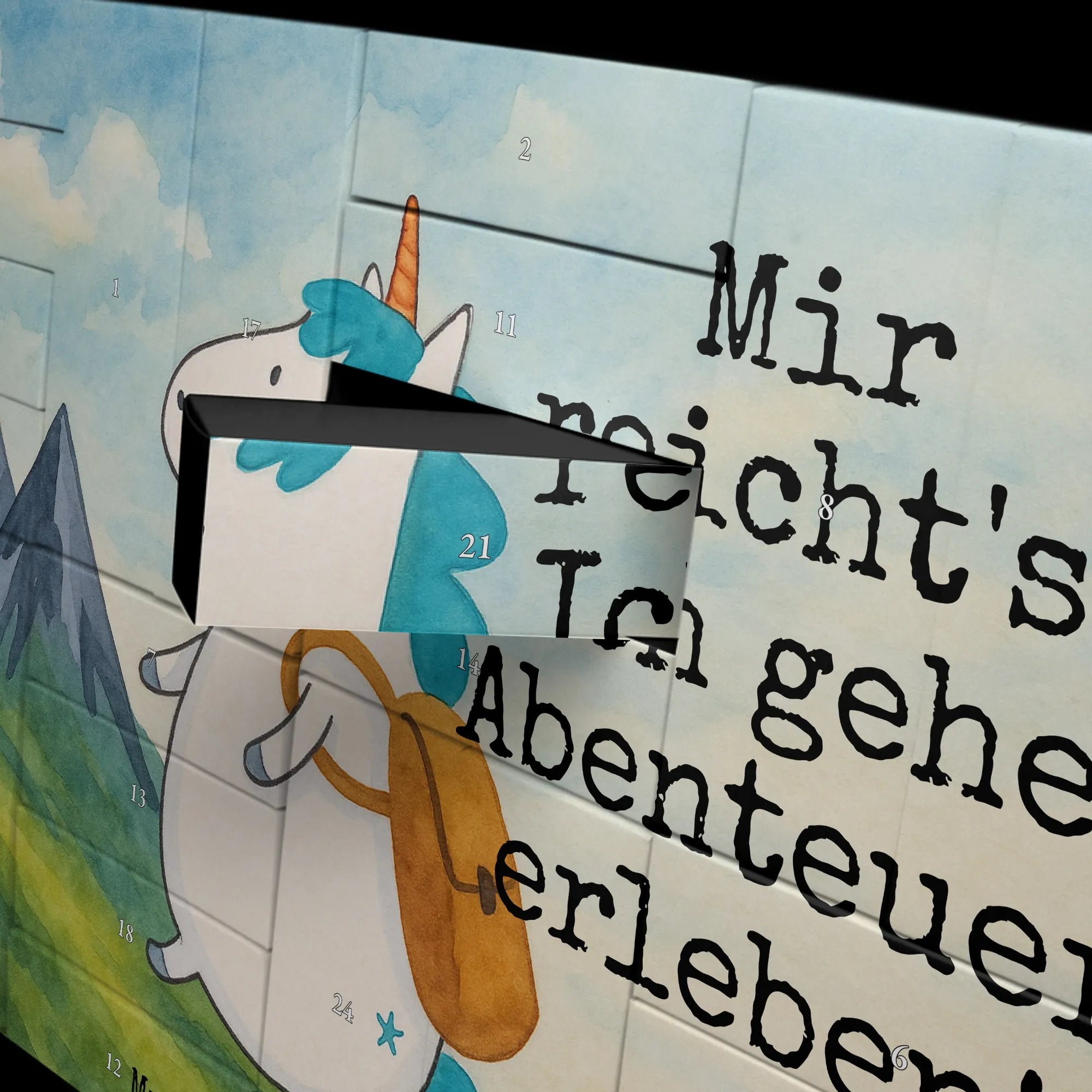Unser zauberhafter Adventskalender Einhorn Bergsteiger ist das ideale Geschenk für alle, die Einhörner, Reisen und Abenteuer lieben. Das hübsche Motiv zeigt ein kleines Einhorn mit Rucksack auf dem Weg in die Berge, begleitet vom frechen Spruch „Mir reicht's! Ich gehe Abenteuer erleben!“ – ein echter Stimmungsmacher für die Adventszeit.