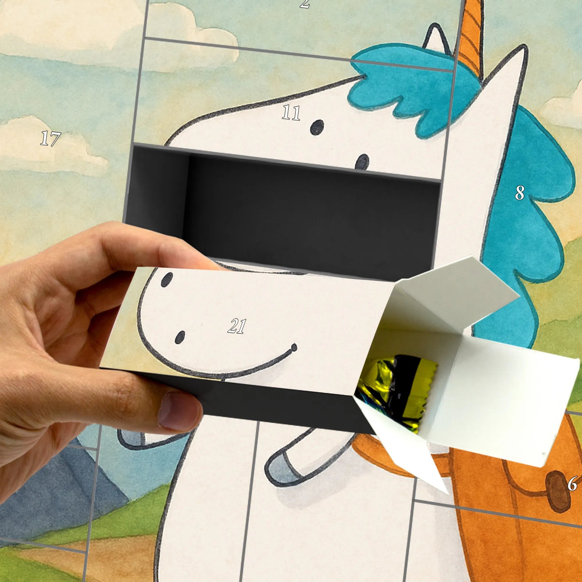 Bring Vorfreude, Kreativität und eine Prise Magie in die Adventszeit – mit dem Befüllbaren Adventskalender Einhorn Bergsteiger von Mr. & Mrs. Panda.