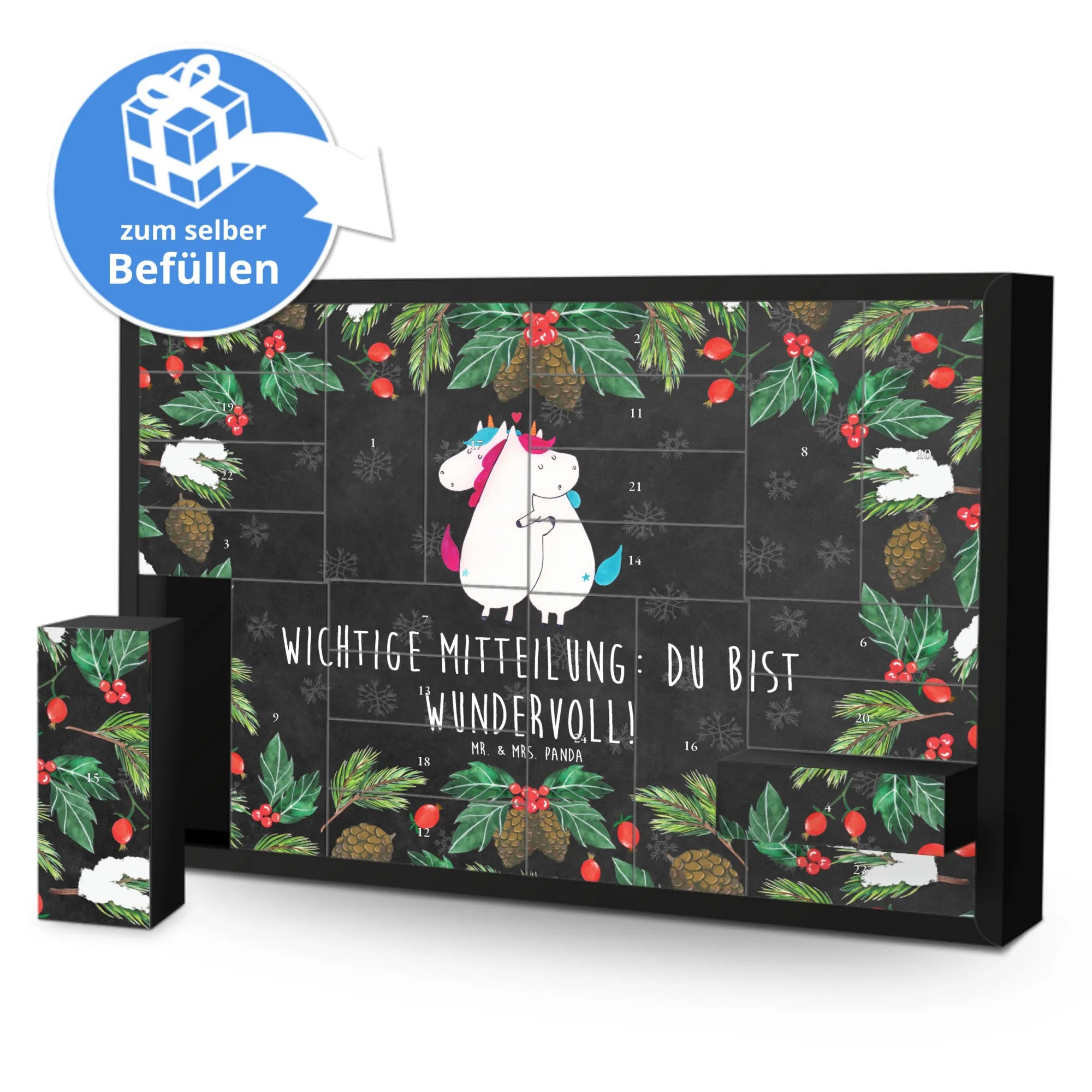 24 small and large boxes shorten the anticipation for Christmas. The best thing about an Advent calendar for filling is that the contents can be individually adapted to the presentee. Do you still need inspiration for Advent calendars Filling gifts or ideas for Advent calendars? Then you will find the most beautiful Mr. & Mrs. Panda products to fill your Advent calendar here:
