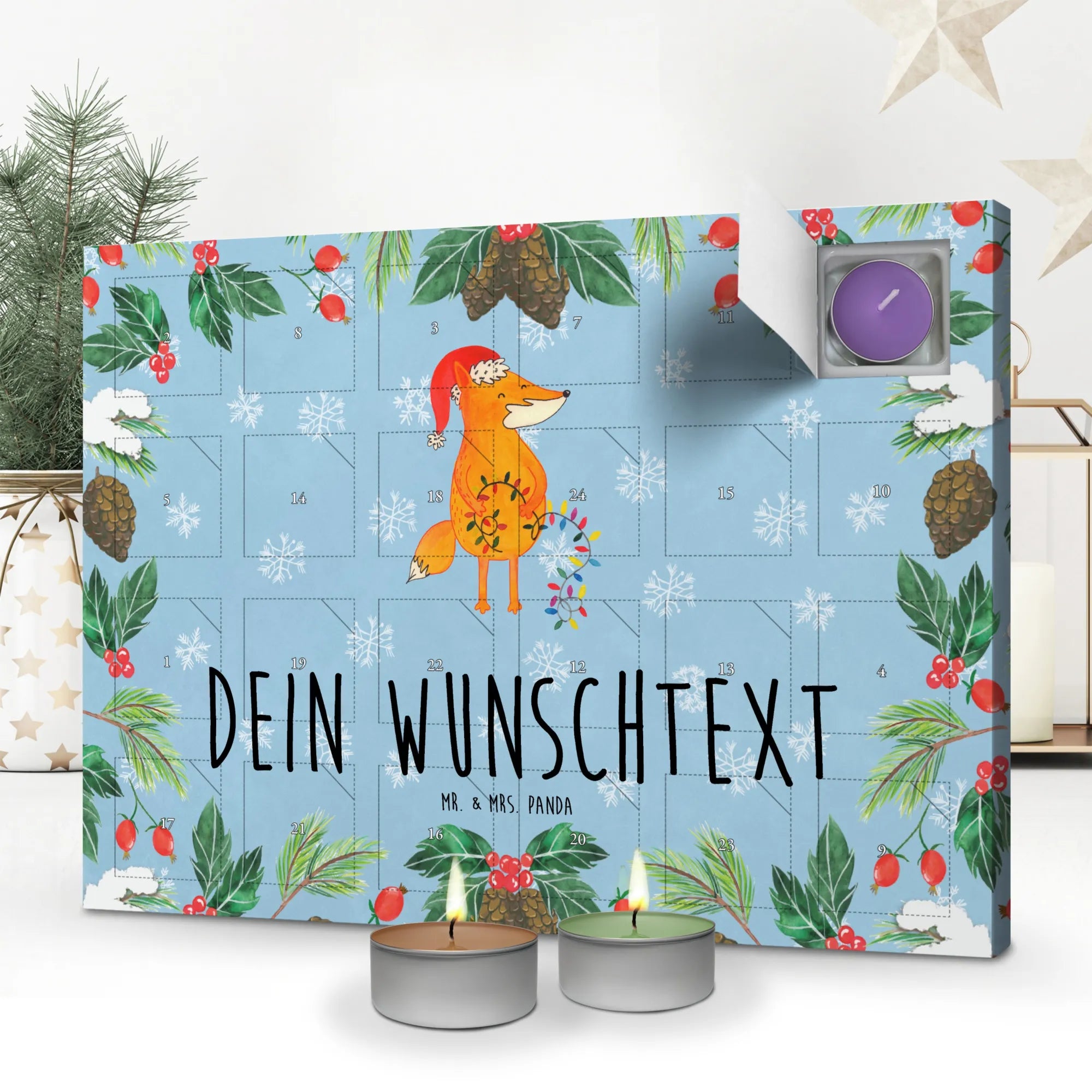 Get ready for a heartwarming Christmas celebration with our delightful fox! Wearing a playful Santa hat and surrounded by twinkling lights, this furry friend radiates holiday spirit. Its warm orange fur, beautifully complemented by green leaves and red berries, makes it a stunning centerpiece for your festive decor. The beloved saying 'Lichterglanz, Tee und warme Socken – das Leben ist schön!' captures the essence of embracing life’s joys. Bring home this enchanting fox to remind yourself and your loved ones that Christmas is not just a holiday; it's a time for love, laughter, and joyful memories.