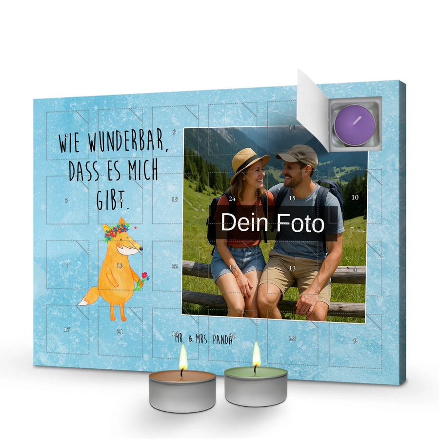 Make this Advent unforgettable with a personalized scented candle photo advent calendar that fills your home with warmth and joy. Choose a clear photo for the calendar to reveal a piece of personal memory each day. The combination of six different fragrances such as Green Tea, Pomegranate, and Oud Wood, packaged in a sturdy box that can be displayed or hung, makes every day leading up to Christmas a special experience. A must-have for anyone seeking something extraordinary.