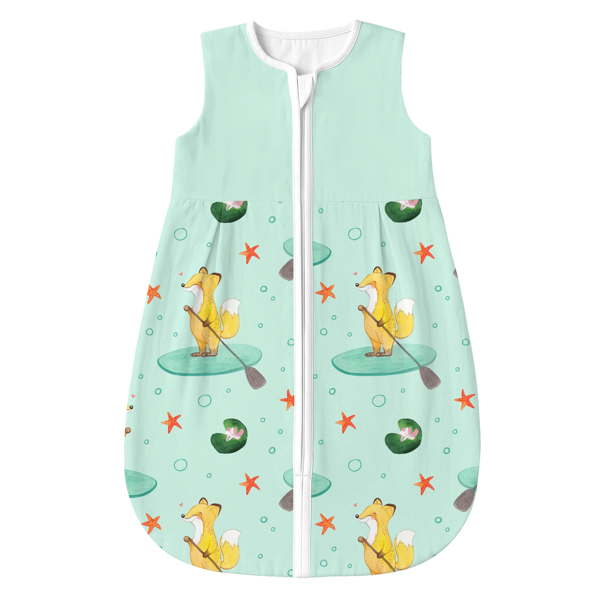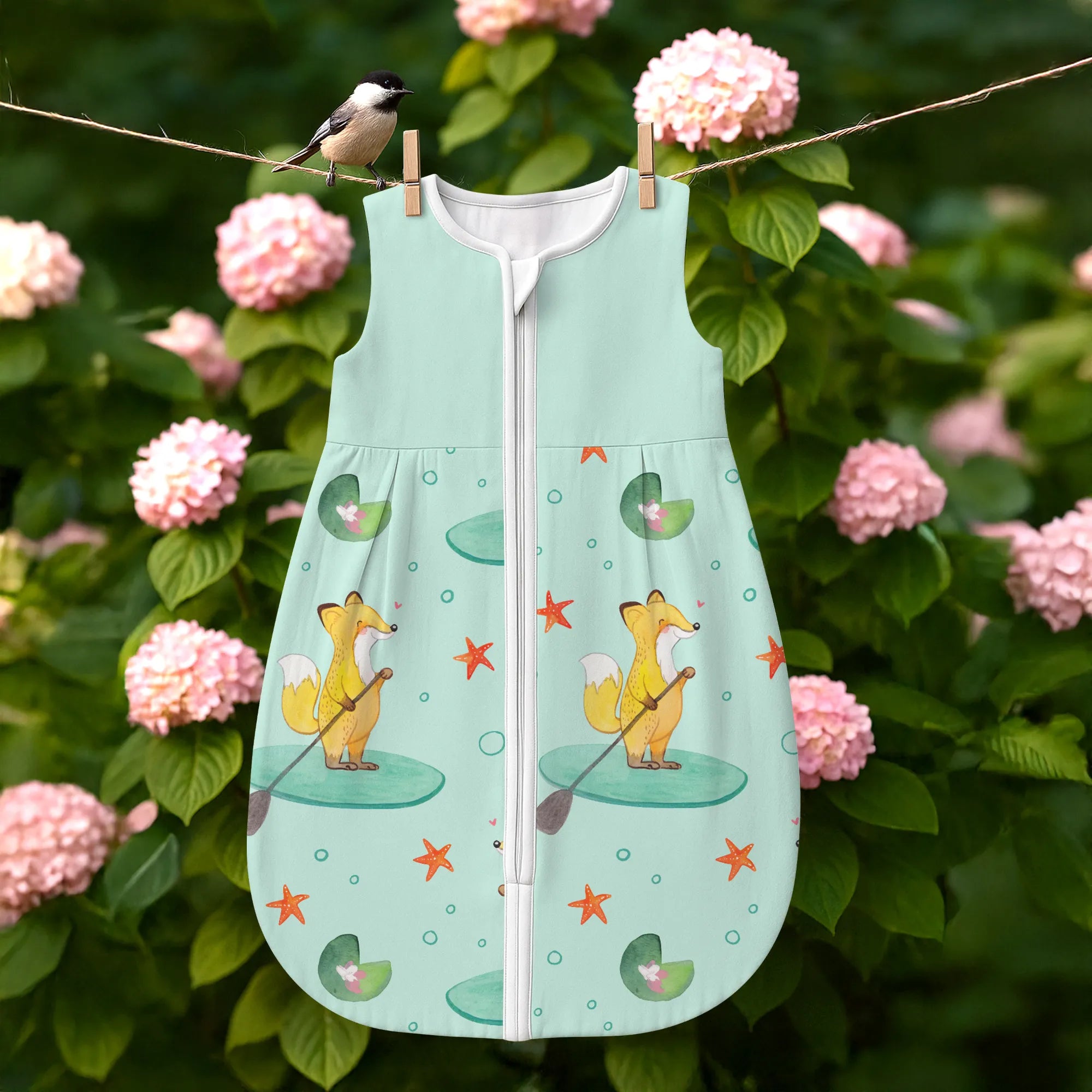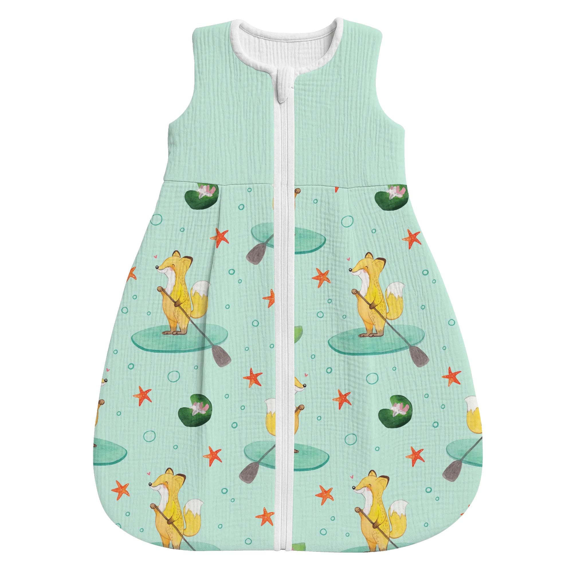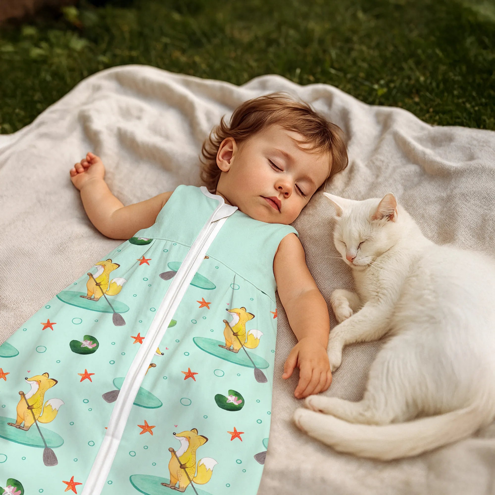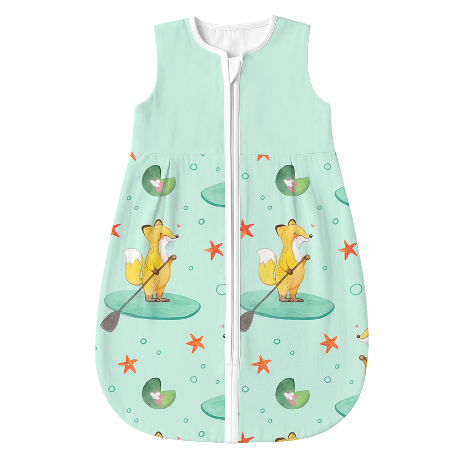 The baby sleeping bag from Mr. & Mrs. Panda combines charming design with maximum comfort. As a baby sleeping bag, it is printed with cute motifs and sayings from Mr. & Mrs. Panda and delights with very bright colors. The soft, breathable fabric ensures a high level of wearing comfort and a pleasant fit that makes dressing and undressing easier. A practical zipper allows quick diaper changes, while the fine binding at the neckline, sleeves and leg openings is gentle on the skin. Depending on the variant, it is available in different materials, including skin-friendly cotton, and comes in many sizes — please refer to the size chart. Not customizable and handmade for you. Easy care: machine washable at a maximum of 30 °C; gentle detergents recommended.