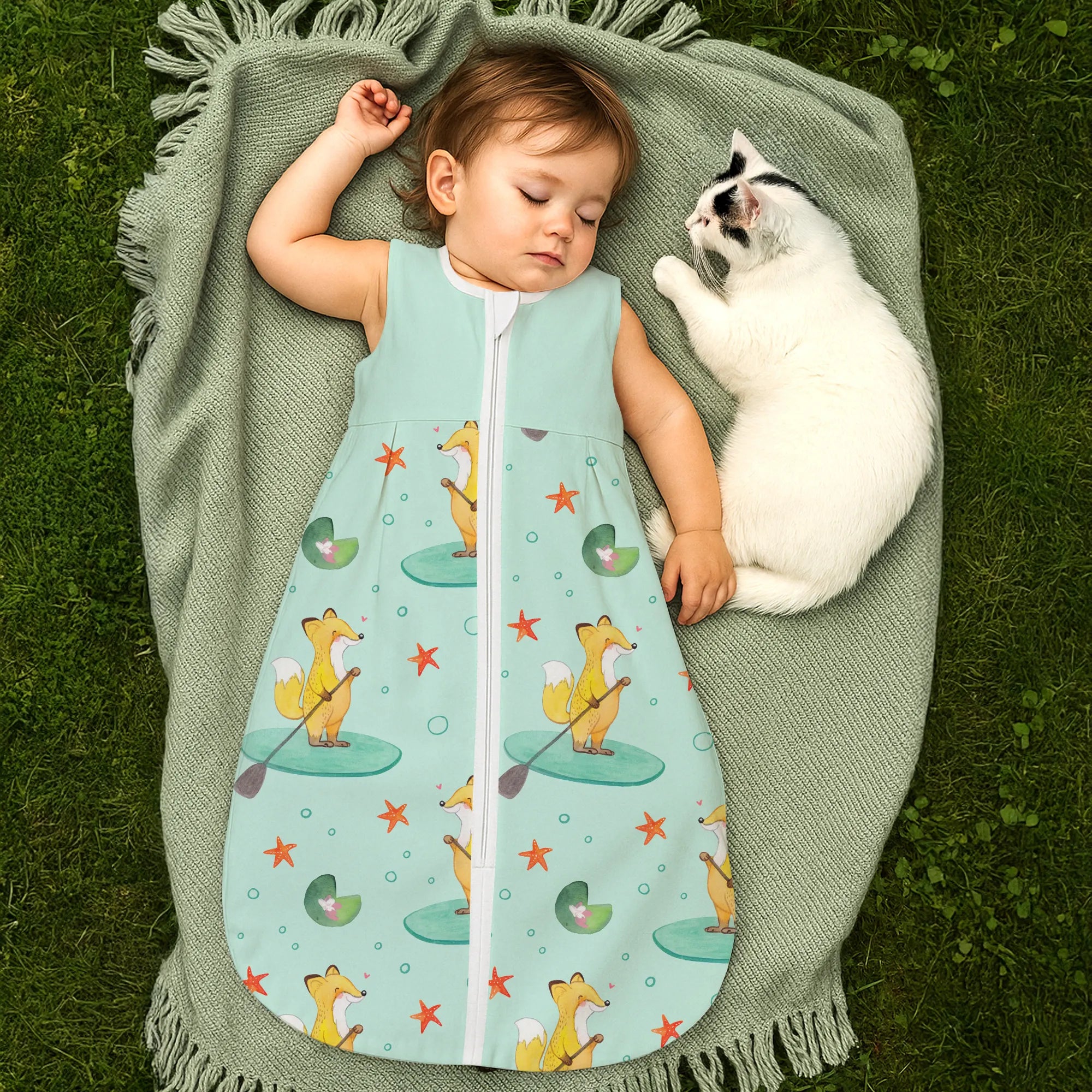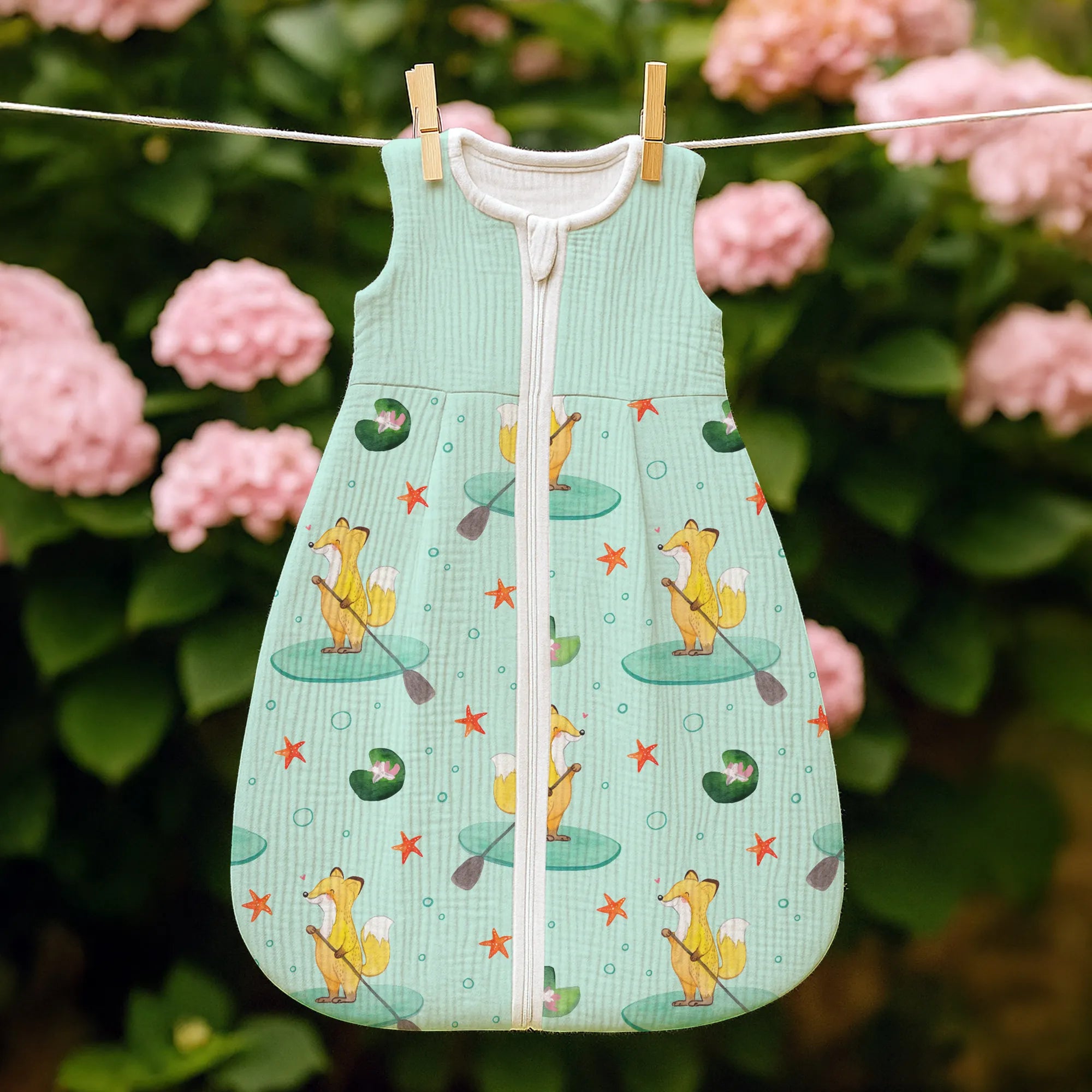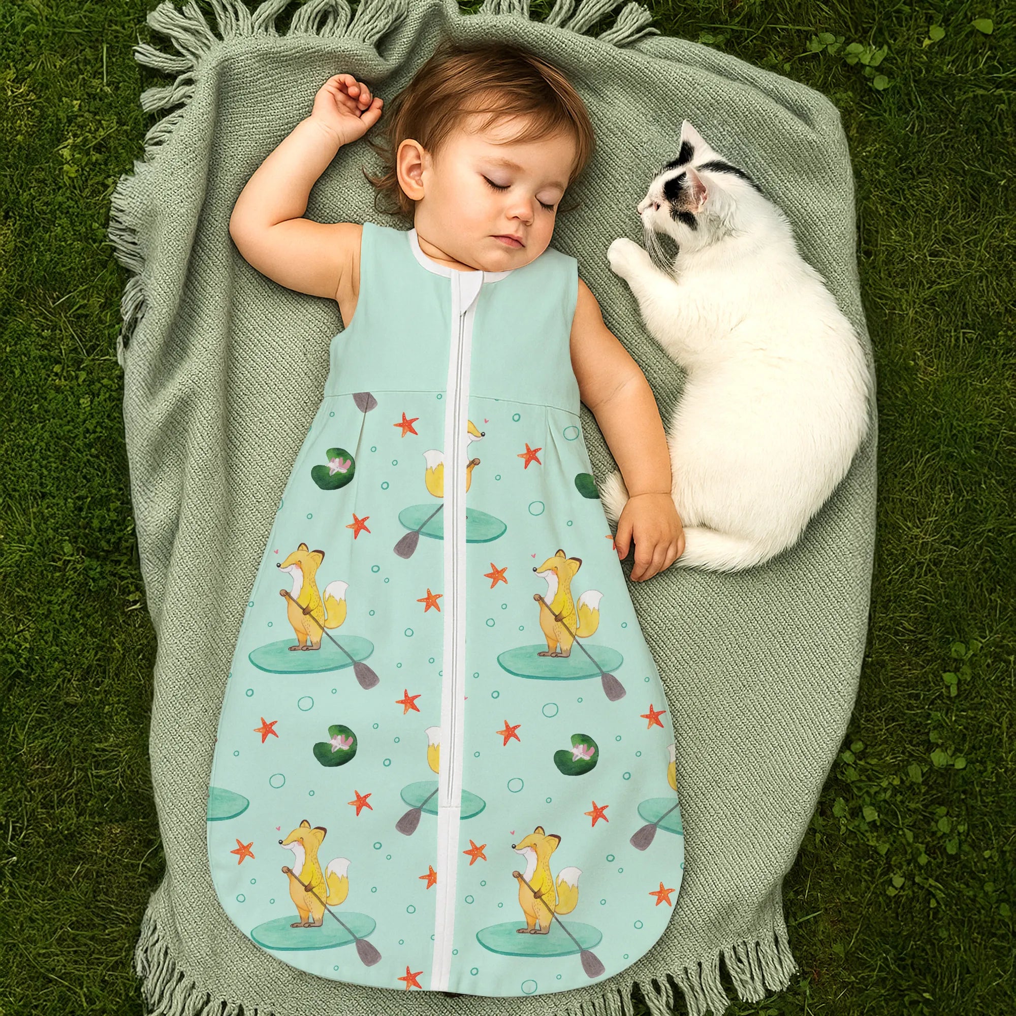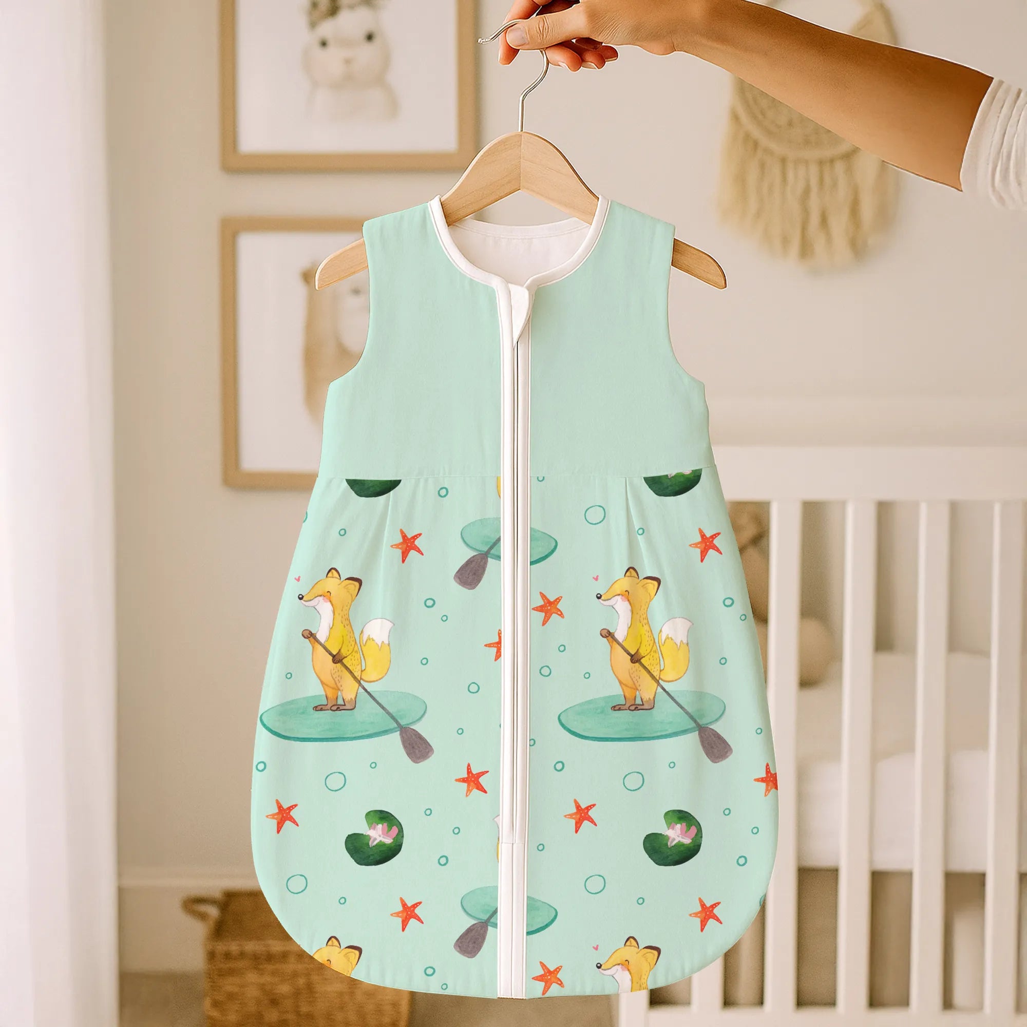 The baby sleeping bag from Mr. & Mrs. Panda combines charming design with maximum comfort. As a baby sleeping bag, it is printed with cute motifs and sayings from Mr. & Mrs. Panda and delights with very bright colors. The soft, breathable fabric ensures a high level of wearing comfort and a pleasant fit that makes dressing and undressing easier. A practical zipper allows quick diaper changes, while the fine binding at the neckline, sleeves and leg openings is gentle on the skin. Depending on the variant, it is available in different materials, including skin-friendly cotton, and comes in many sizes — please refer to the size chart. Not customizable and handmade for you. Easy care: machine washable at a maximum of 30 °C; gentle detergents recommended.
