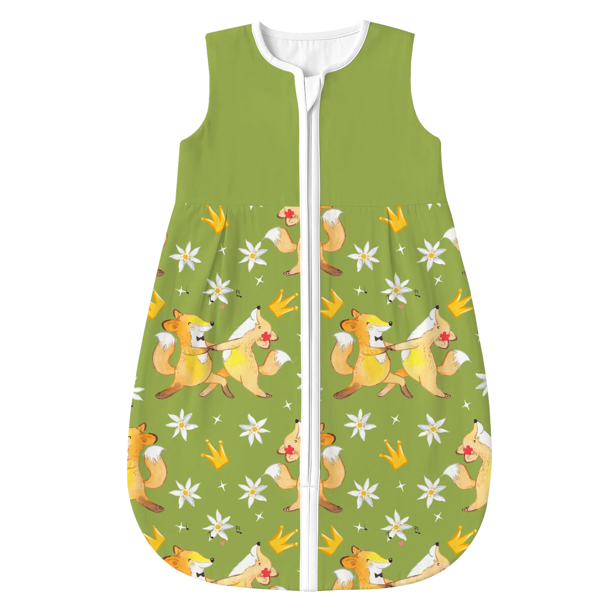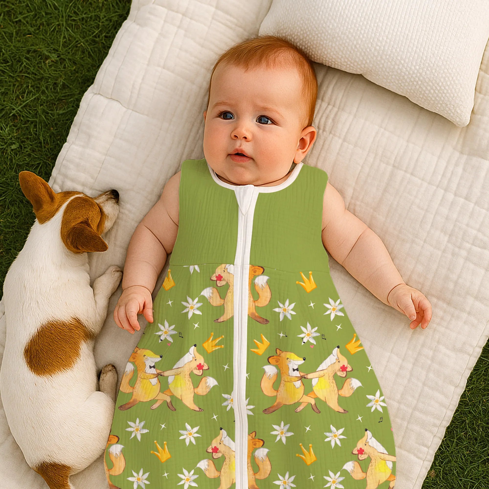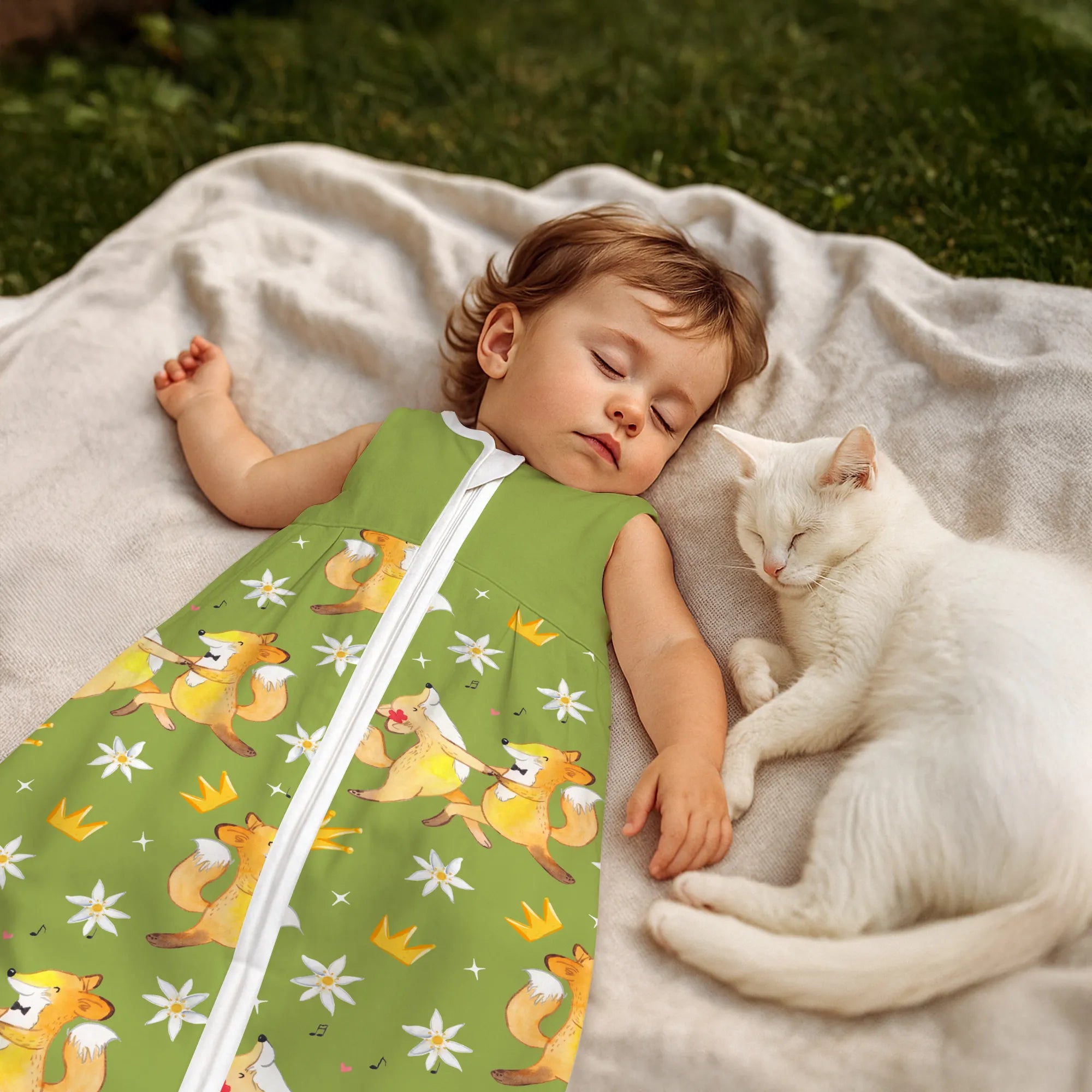 The baby sleeping bag from Mr. & Mrs. Panda combines charming design with maximum comfort. As a baby sleeping bag, it is printed with cute motifs and sayings from Mr. & Mrs. Panda and delights with very bright colors. The soft, breathable fabric ensures a high level of wearing comfort and a pleasant fit that makes dressing and undressing easier. A practical zipper allows quick diaper changes, while the fine binding at the neckline, sleeves and leg openings is gentle on the skin. Depending on the variant, it is available in different materials, including skin-friendly cotton, and comes in many sizes — please refer to the size chart. Not customizable and handmade for you. Easy care: machine washable at a maximum of 30 °C; gentle detergents recommended.