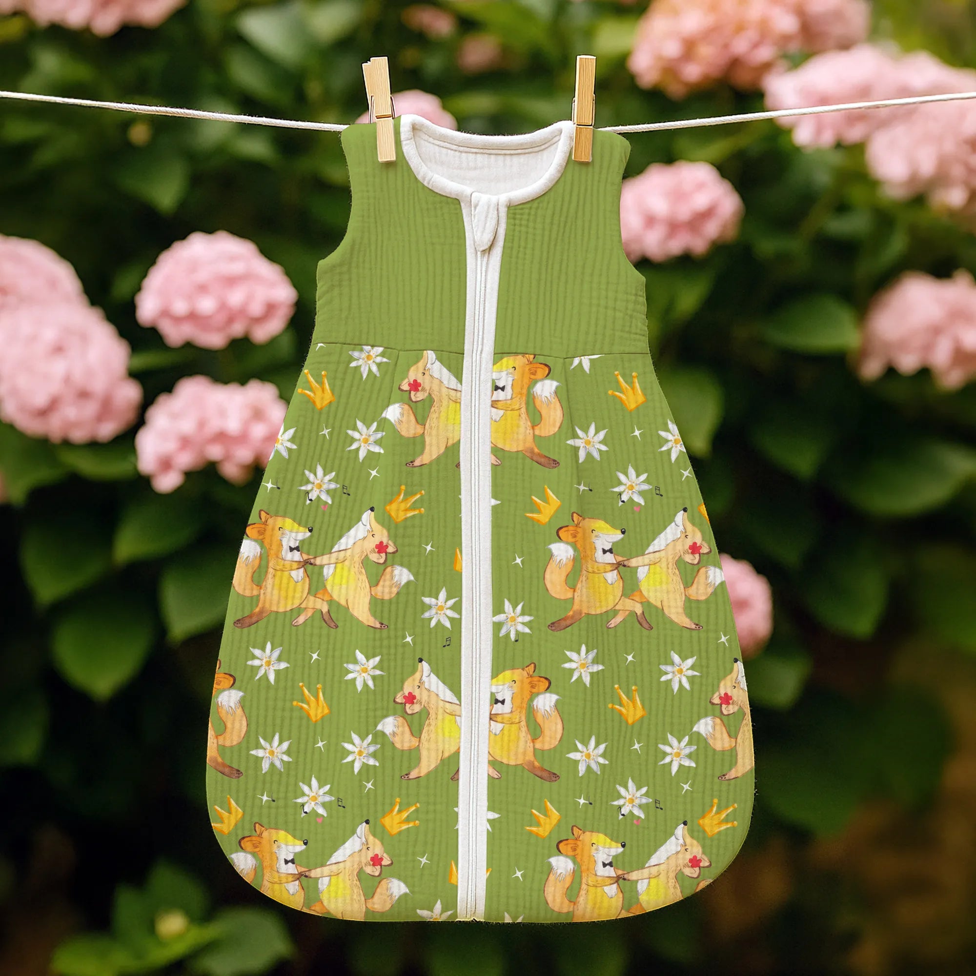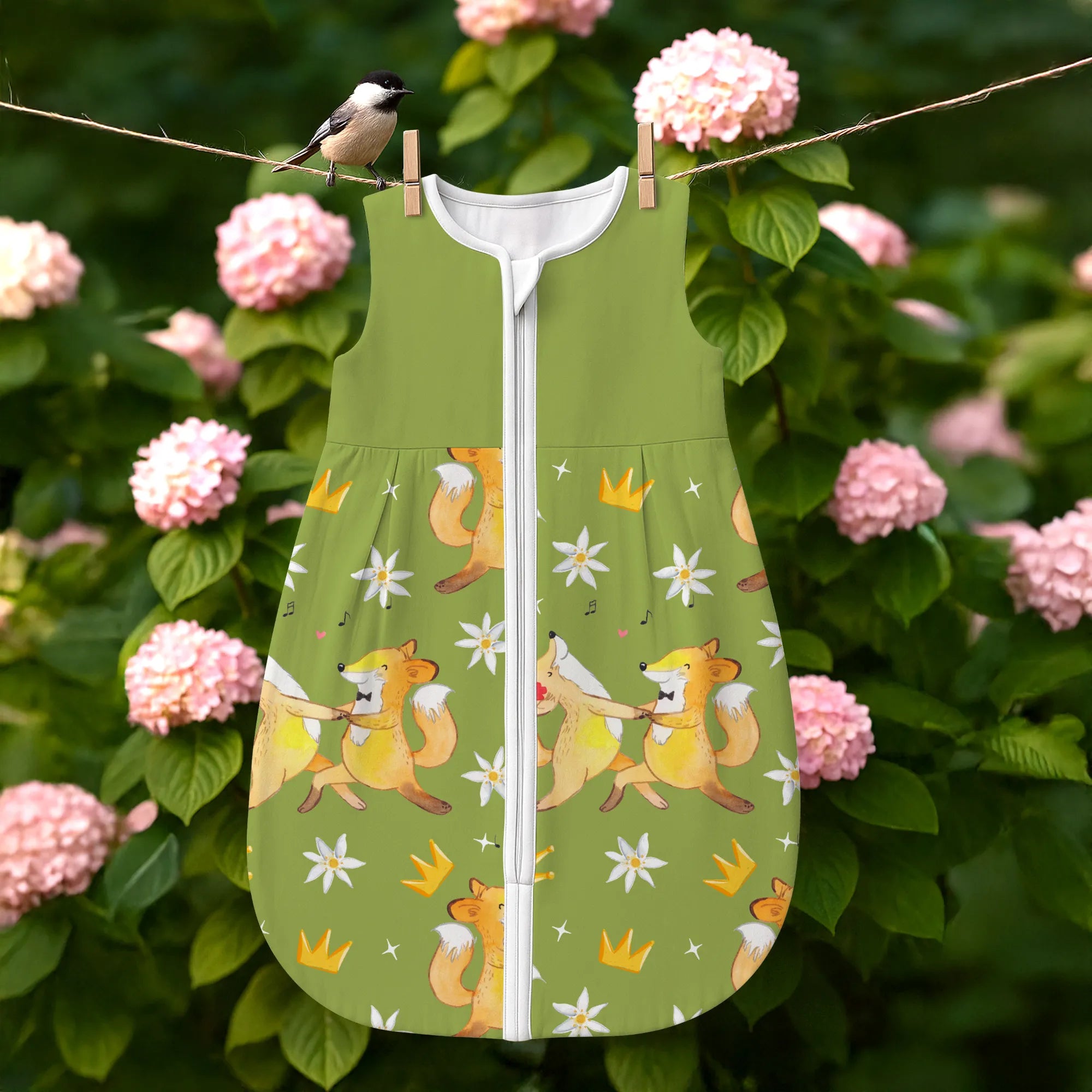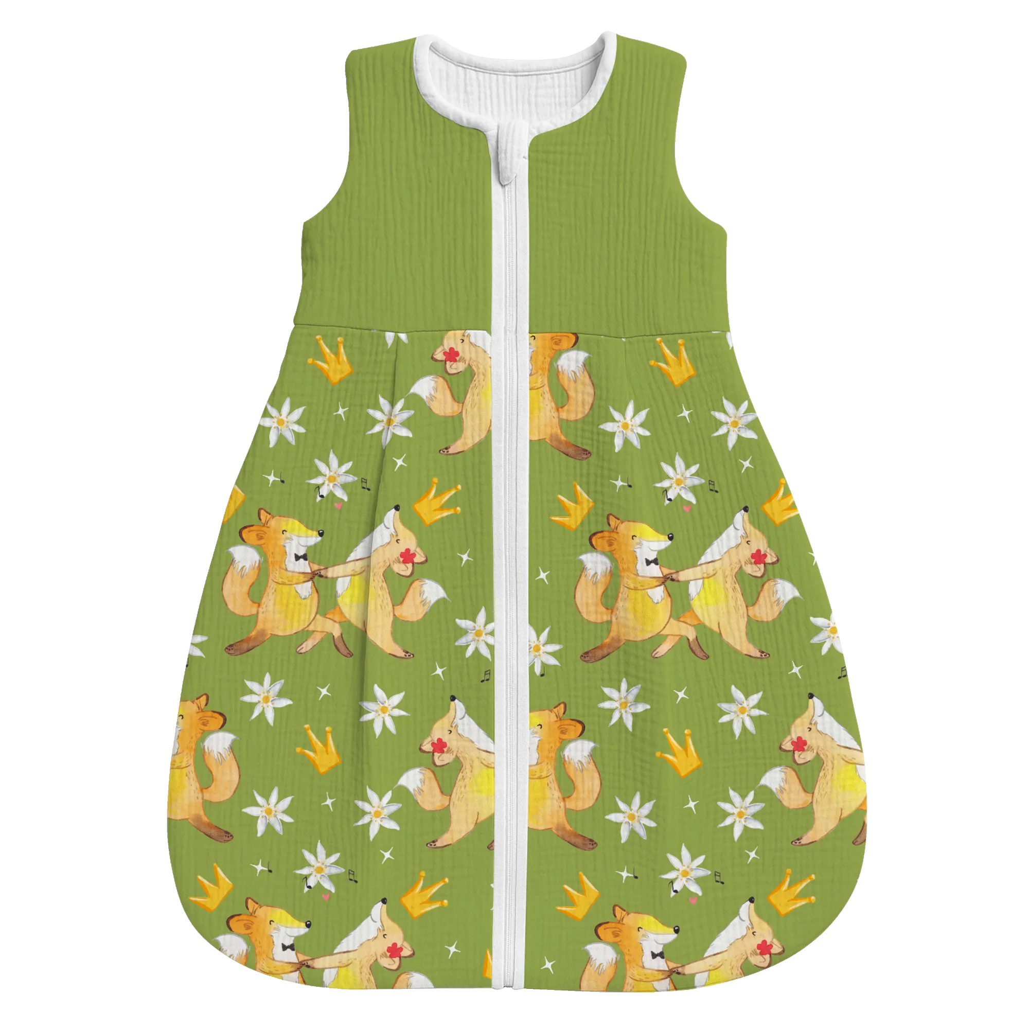 The baby sleeping bag from Mr. & Mrs. Panda combines charming design with maximum comfort. As a baby sleeping bag, it is printed with cute motifs and sayings from Mr. & Mrs. Panda and delights with very bright colors. The soft, breathable fabric ensures a high level of wearing comfort and a pleasant fit that makes dressing and undressing easier. A practical zipper allows quick diaper changes, while the fine binding at the neckline, sleeves and leg openings is gentle on the skin. Depending on the variant, it is available in different materials, including skin-friendly cotton, and comes in many sizes — please refer to the size chart. Not customizable and handmade for you. Easy care: machine washable at a maximum of 30 °C; gentle detergents recommended.