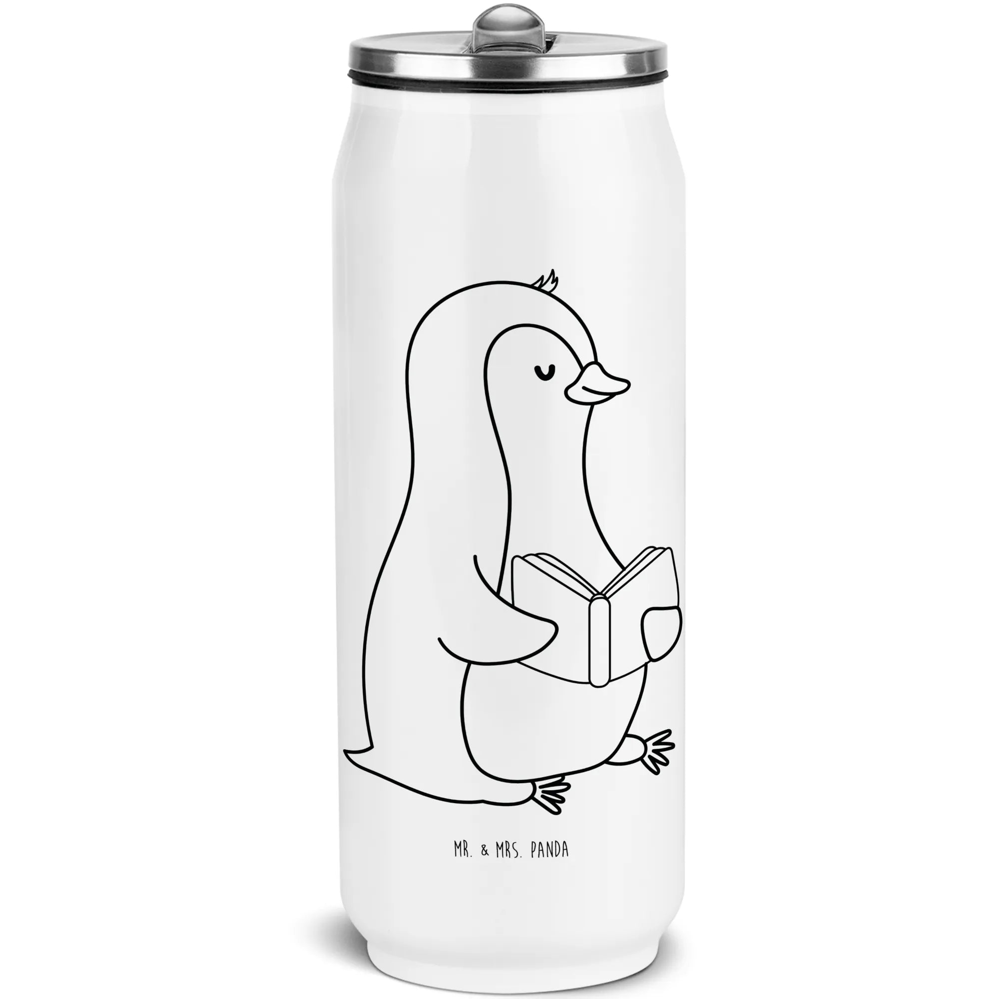 Suchst du das perfekte Geschenk für einen Bücherwurm oder einen Bücherliebhaber? Dann ist die Edelstahl Getränkedosen Trinkflasche mit dem süßen Pinguin-Motiv 'Pinguin Buch' aus der Pinguin-Kollektion von Mr. & Mrs. Panda genau das Richtige!