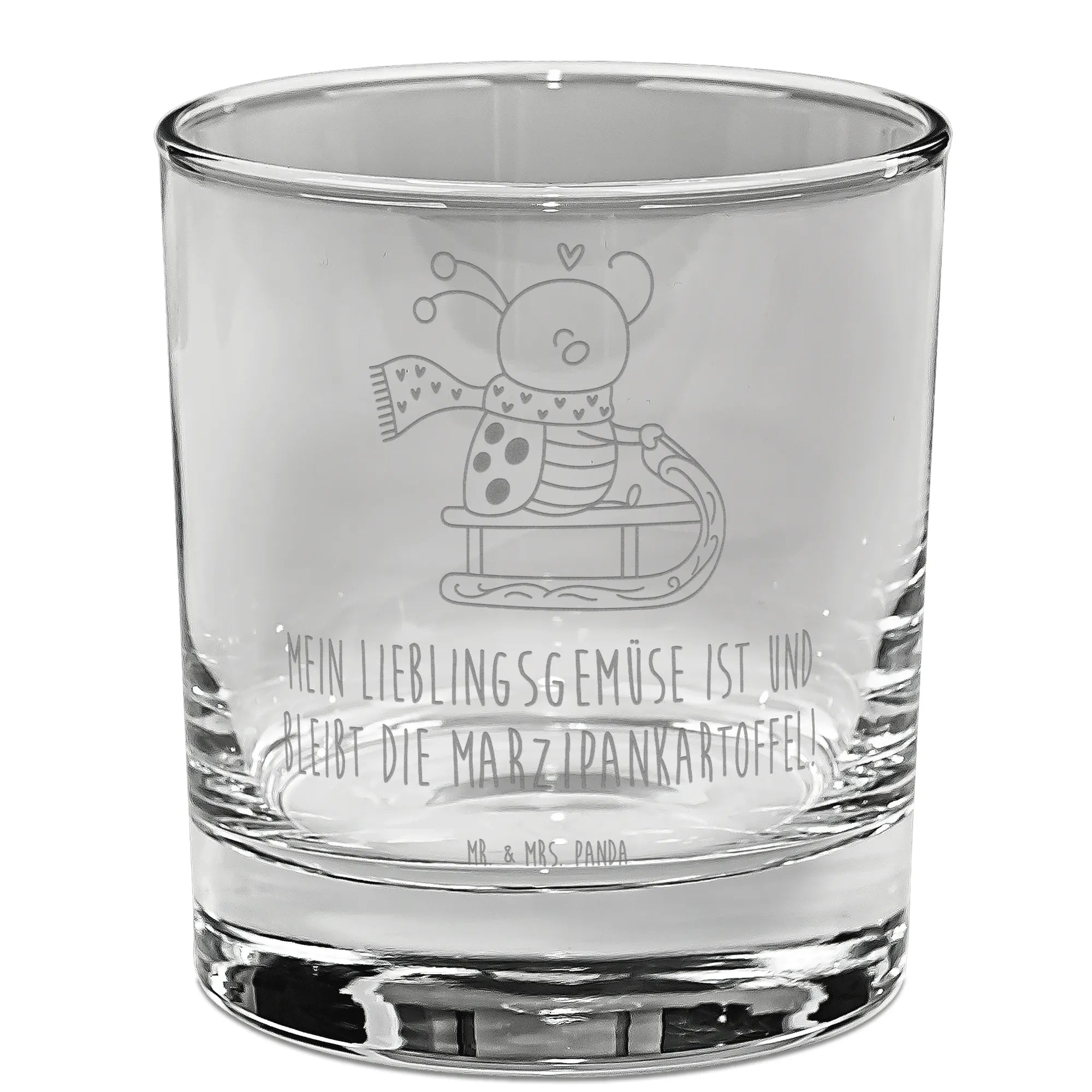 In dieser zauberhaften Winterwelt genießt unser fröhlicher Marienkäfer namens Smörle das Schlittenfahren in vollen Zügen. Auf seinem Schlitten, den er mit einem bunten Scarf und einem süßen roten Herz dekoriert hat, strahlt er vor Freude. Die Schneelandschaft rundherum glitzert und funkelt, während Smörle fröhlich durch die weiße Pracht saust. Dieser Motive zeigt, dass man die kleinen Freuden des Lebens - wie ein einfaches Rodeln im Winter - in vollen Zügen auskosten sollte. "Mein Lieblingsgemüse ist und bleibt die Marzipankartoffel!" vermittelt genau dieses Gefühl, es ist einfach skurril und freundlich, so wie Smörle selbst.
