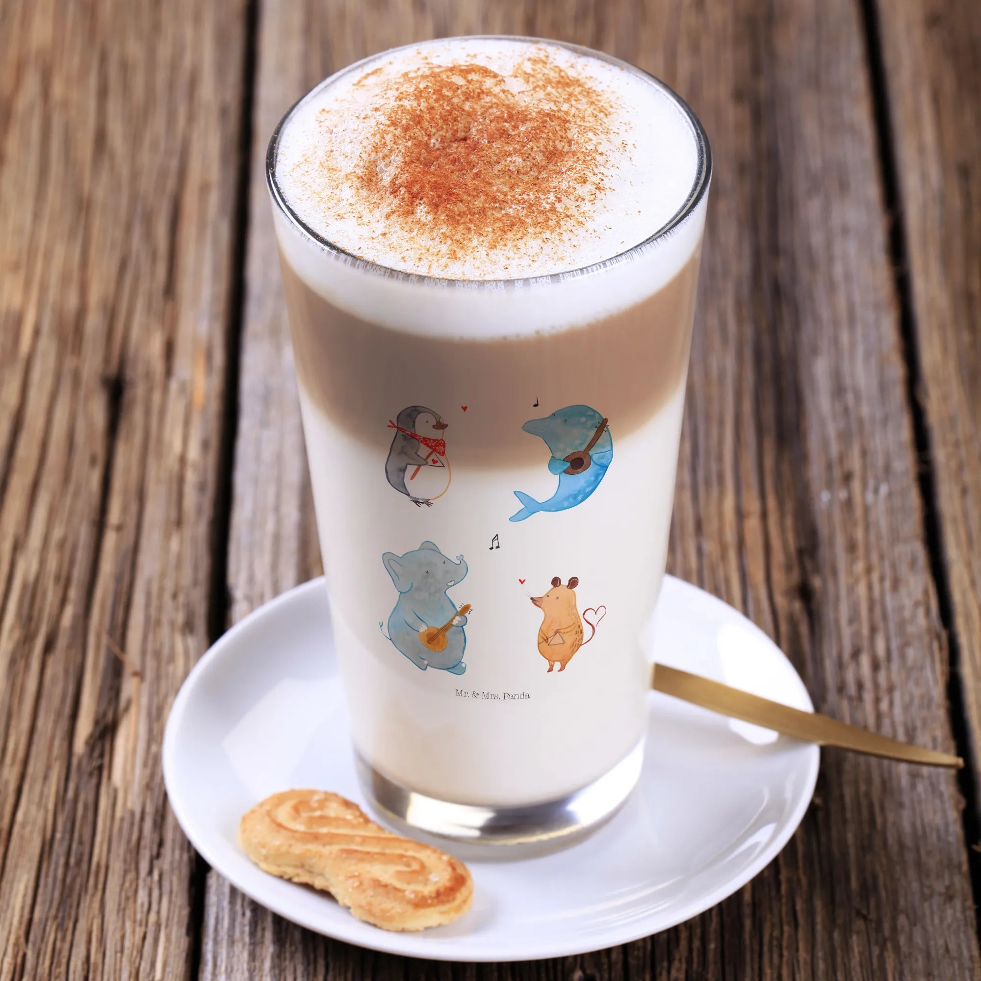 Looking for a delightful gift that brings joy to animal lovers and music enthusiasts alike? Introducing the Big Band Cappuccino Glass from the Small World collection by Mr. & Mrs. Panda! This charming glass is not just any drinking vessel; it’s a joyful celebration of animals in music! Featuring an enchanting illustration of a penguin, mouse, dolphin, and elephant, all jamming together in a lively band, this glass perfectly encapsulates the spirit of fun and creativity.